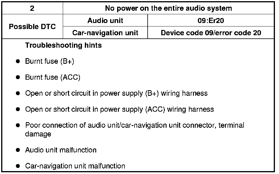 NO.2 NO POWER TO THE ENTIRE AUDIO SYSTEM [ENTIRE AUDIO SYSTEM]