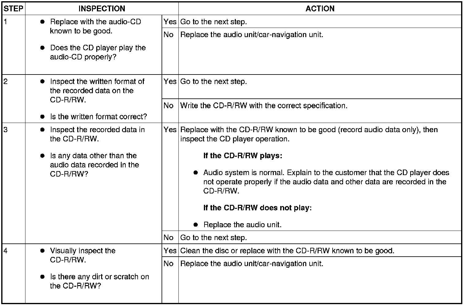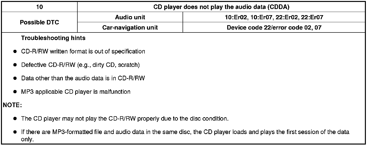 NO.10 CD PLAYER DOES NOT PLAY THE AUDIO DATA (CDDA) [CD PLAYER/CHANGER]