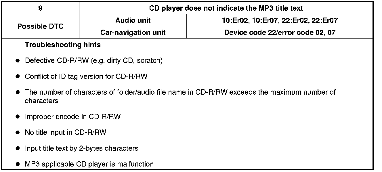 NO.9 CD PLAYER DOES NOT INDICATE THE MP3 TITLE TEXT [CD PLAYER/CHANGER]