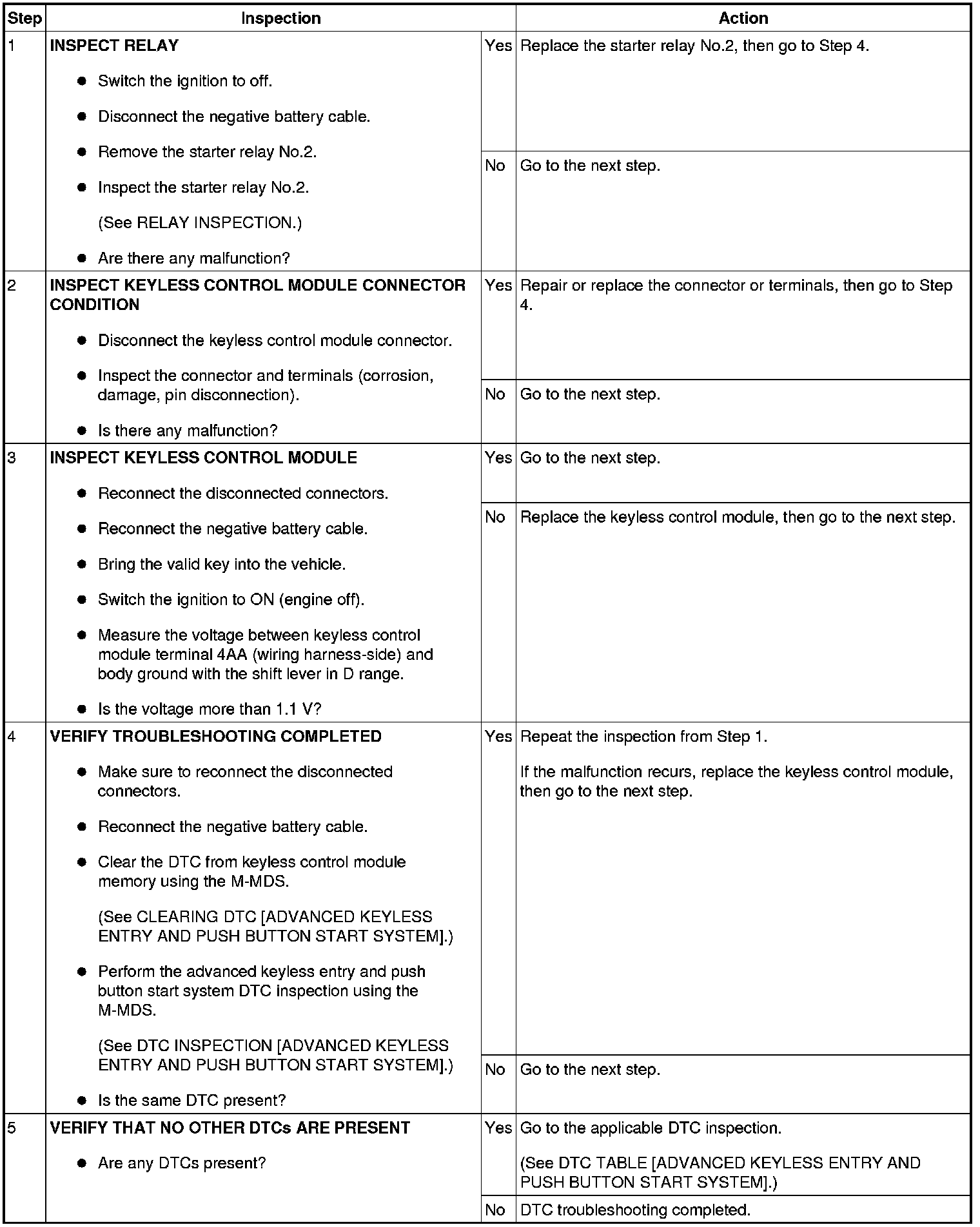 DTC P0850:29 [ADVANCED KEYLESS ENTRY AND PUSH BUTTON START SYSTEM]