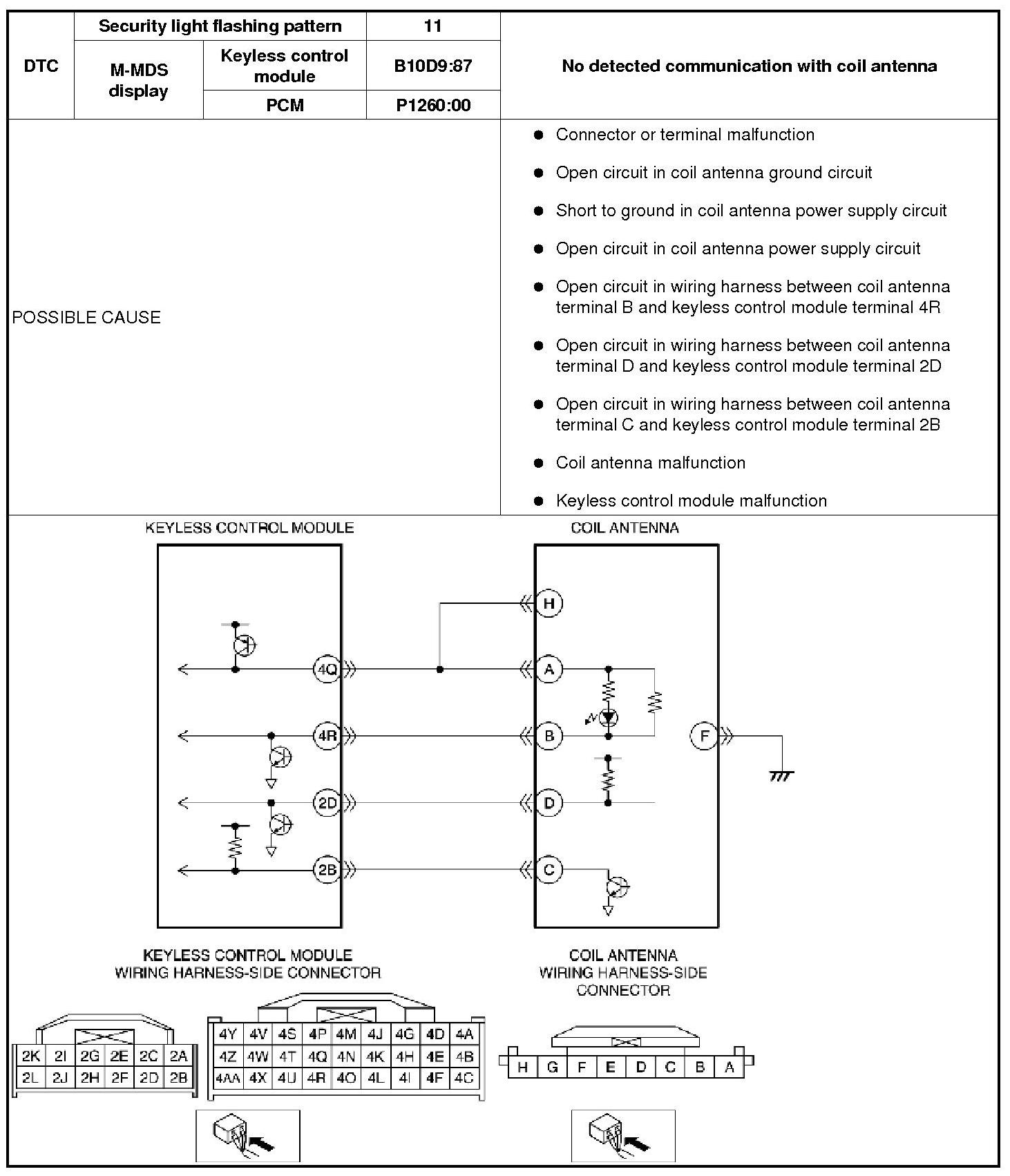 SECURITY LIGHT: 11, DTC: B10D9:87/P1260:00 [IMMOBILIZER SYSTEM (ADVANCED KEYLESS ENTRY AND PUSH BUTTON START SYSTEM)]