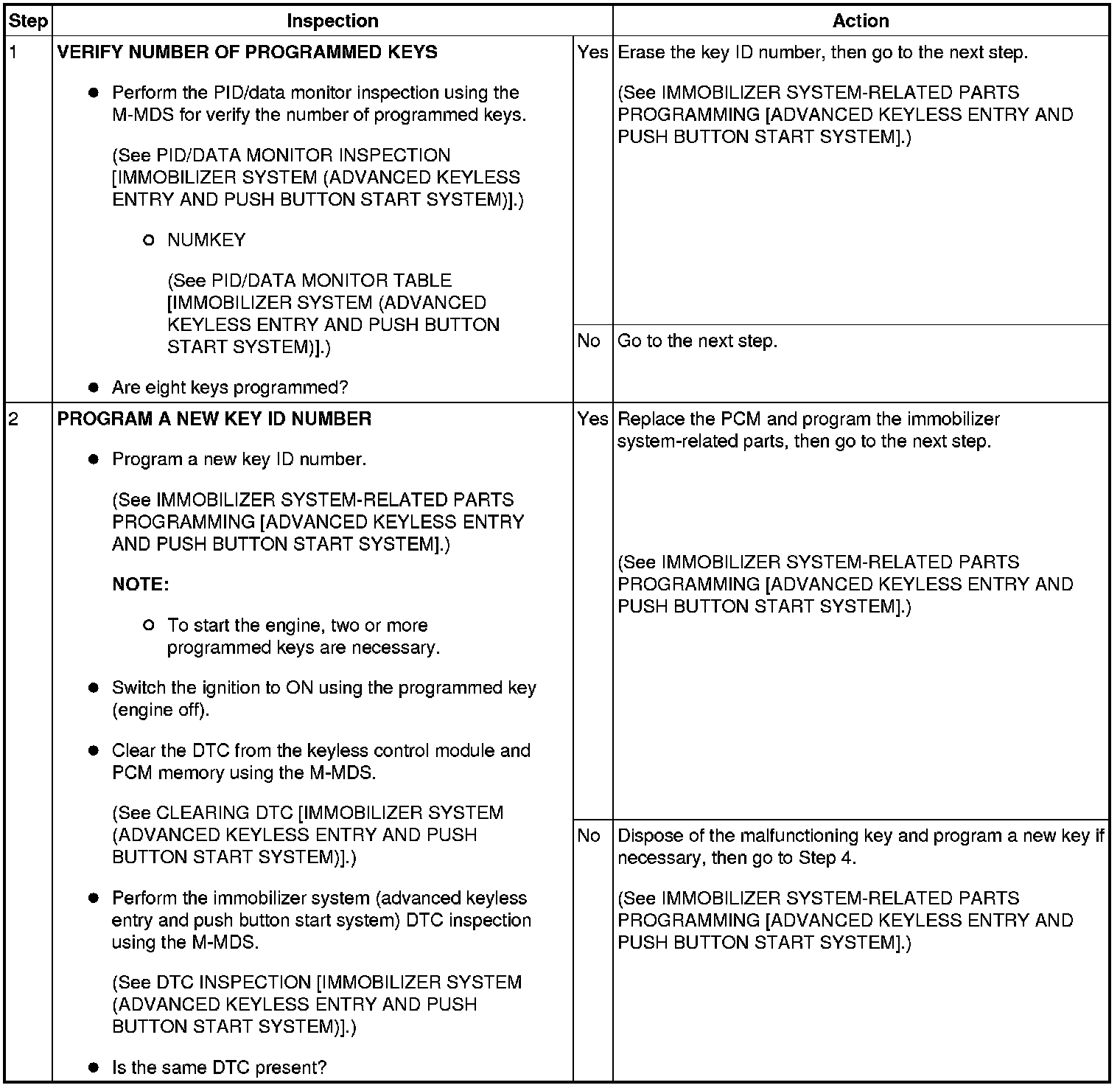 SECURITY LIGHT: 15, DTC: B10D7:51/P1260:00 [IMMOBILIZER SYSTEM (ADVANCED KEYLESS ENTRY AND PUSH BUTTON START SYSTEM)]