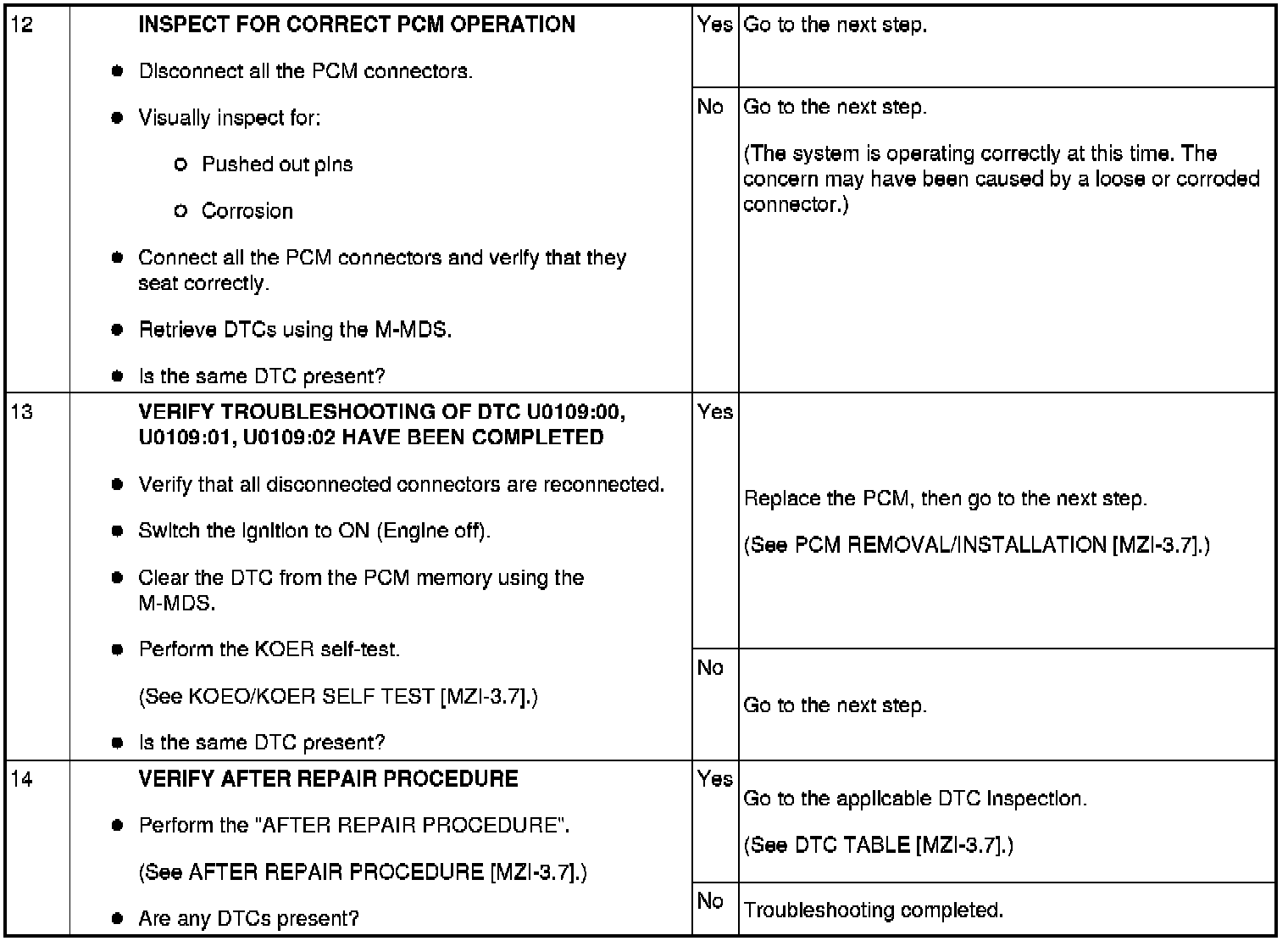 DTC U0109:00, U0109:01, U0109:02 [MZI-3.7]