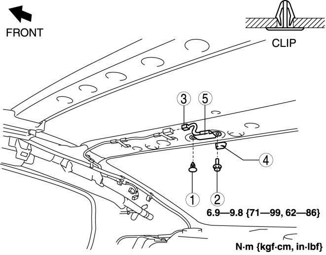c. Upper anchor of the front seat belt Front Seat Belt Removal/Installation