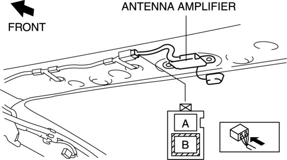10. Verify that voltage is B+ at the antenna amplifier terminal A.