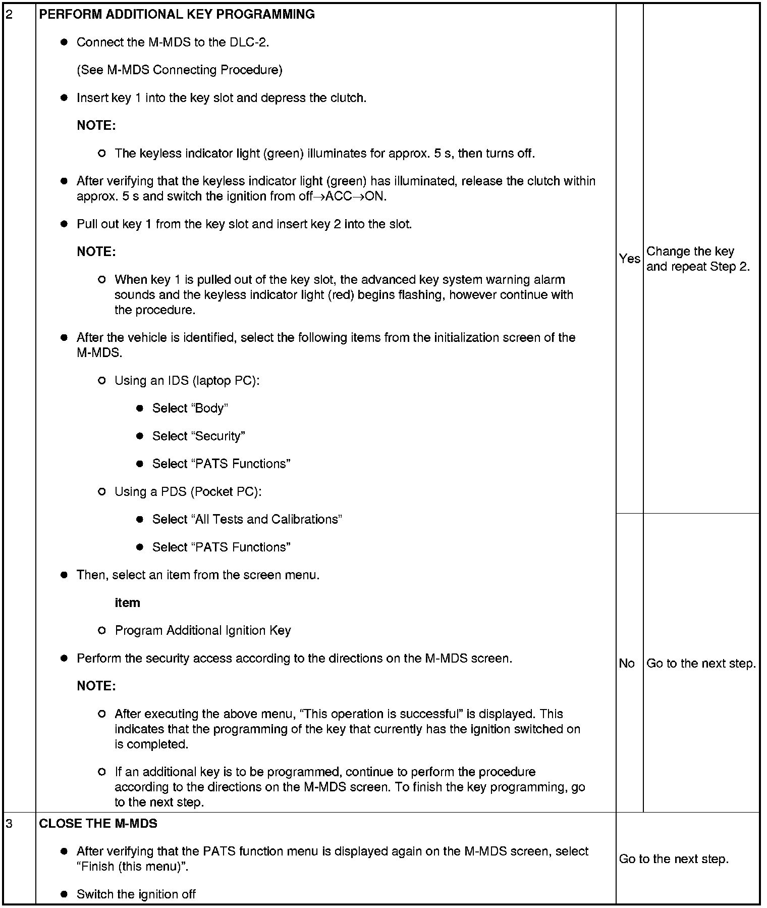 - If a key ID number cannot be programmed, verify the number of programmed keys using the M-MDS.