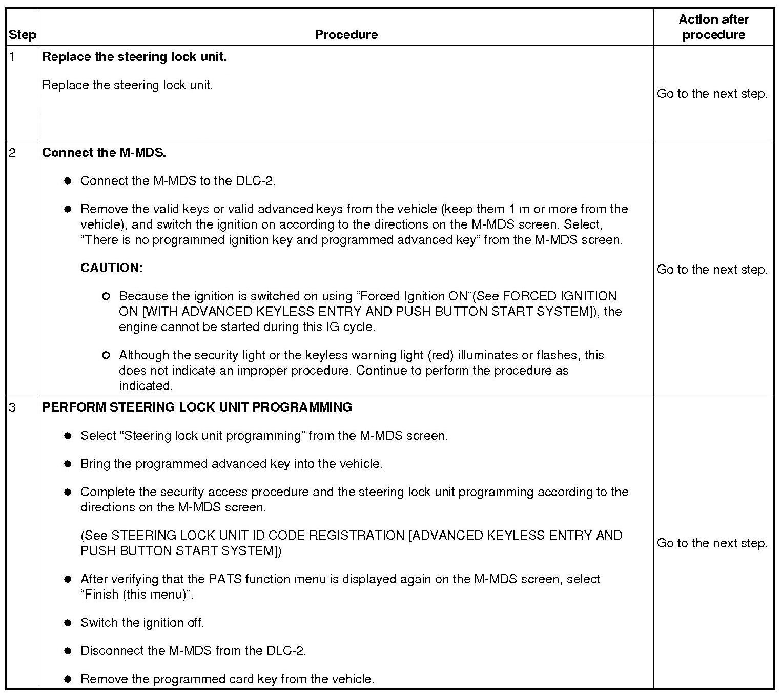 No.3 Programming Procedure Due to Steering Lock Unit Replacement