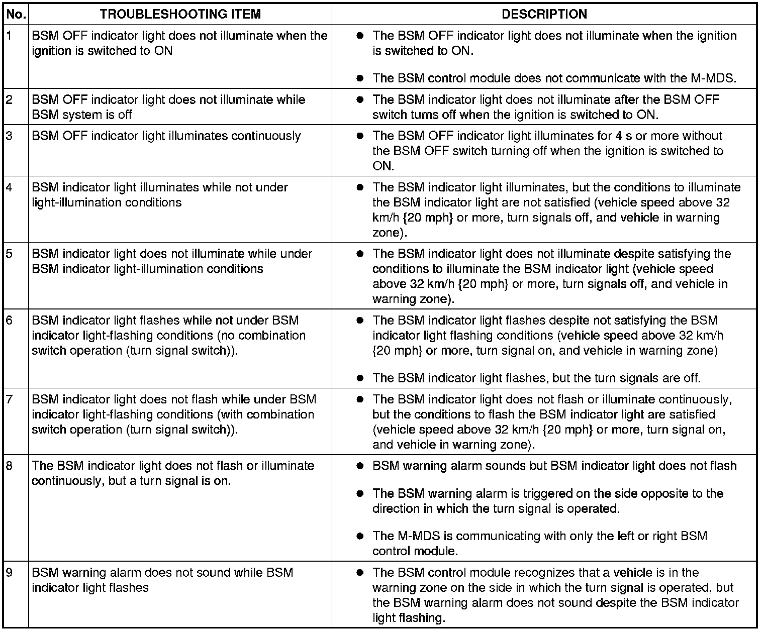 Troubleshooting Index [Blind Spot Monitoring (BSM)]