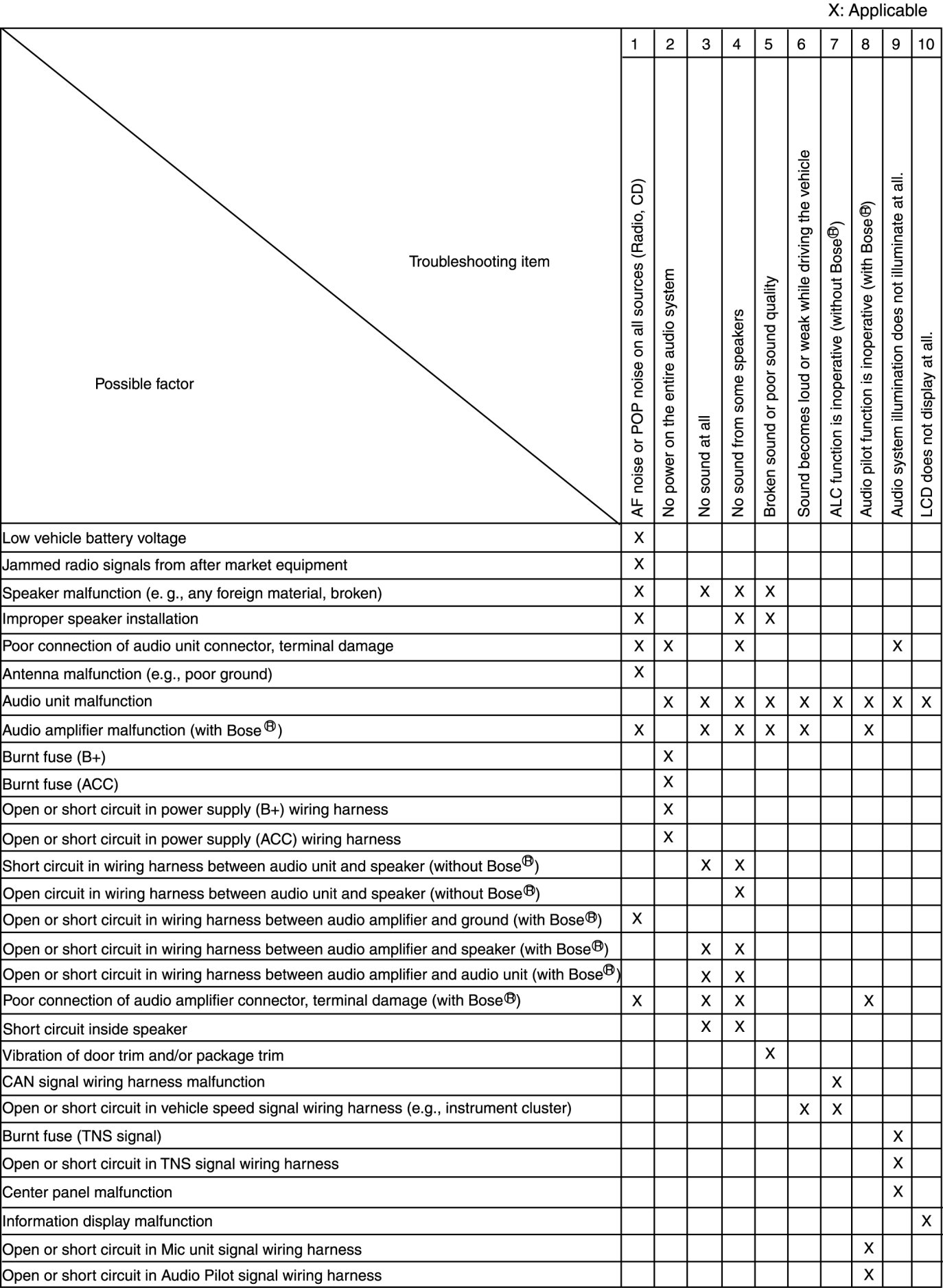 Quick Diagnostic Chart (Entire Audio System)