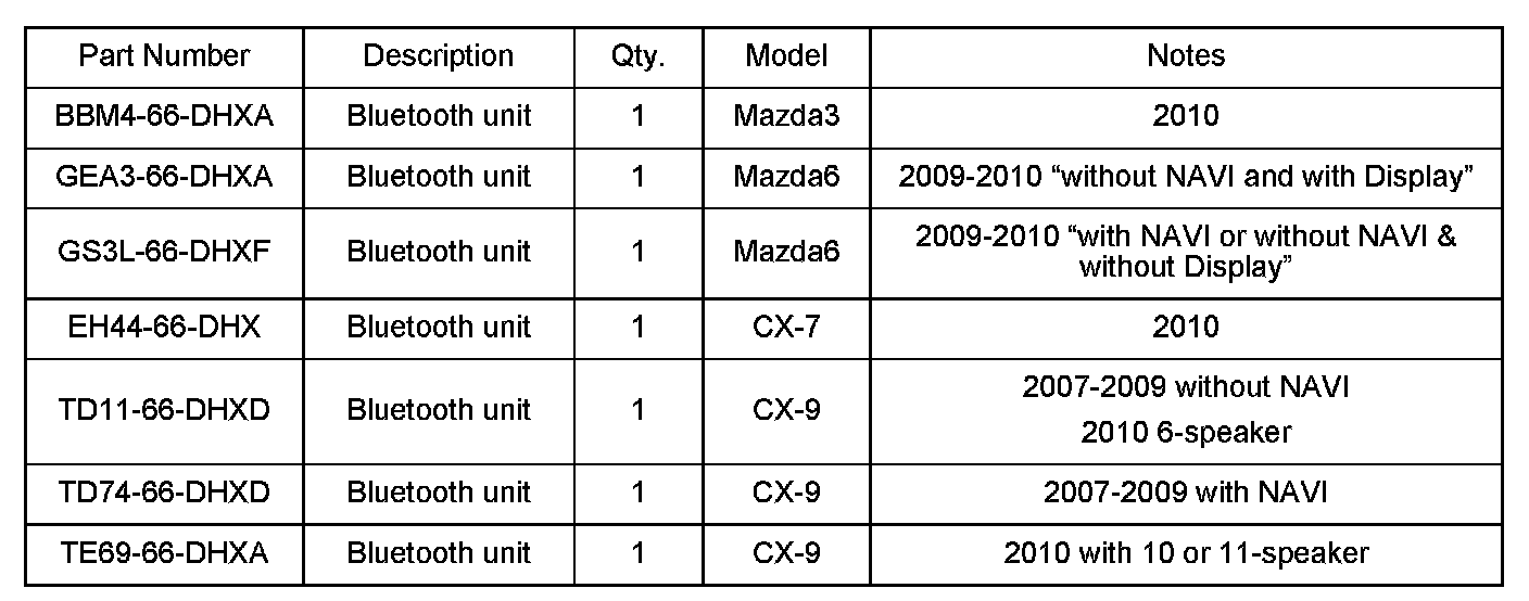 2010 Mazda3 with Bluetooth Hands-Free and VINS before JM1BL****A*193934 (July 29, 2009)