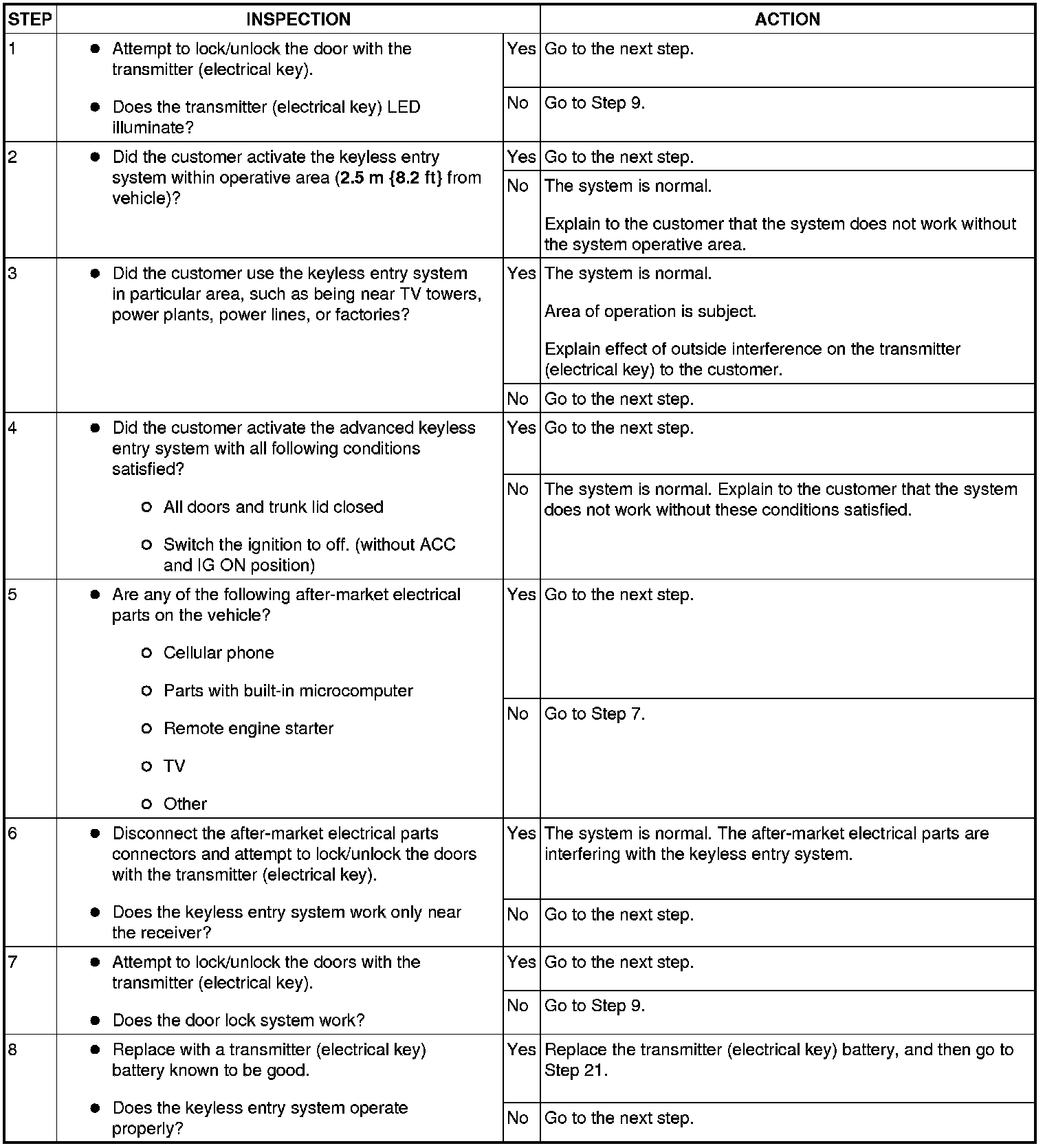 No.1 Door Cannot Be Locked/Unlocked By Transmitter (Electrical Key Button) [Advanced Keyless Entry And Push Button Start System