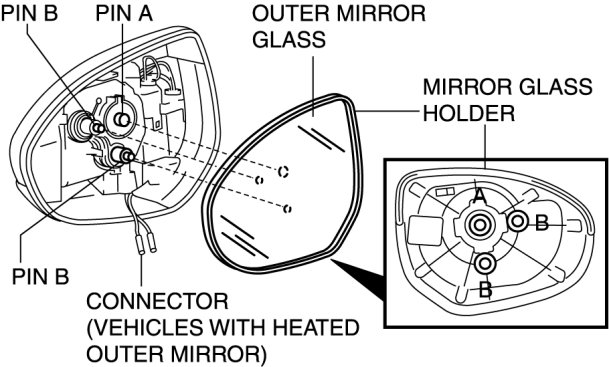 5. Remove the mirror glass holder and the outer mirror glass as a single unit.