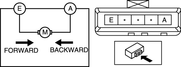 2. Apply battery positive voltage to the recliner motor terminals and inspect the recliner motor operation.