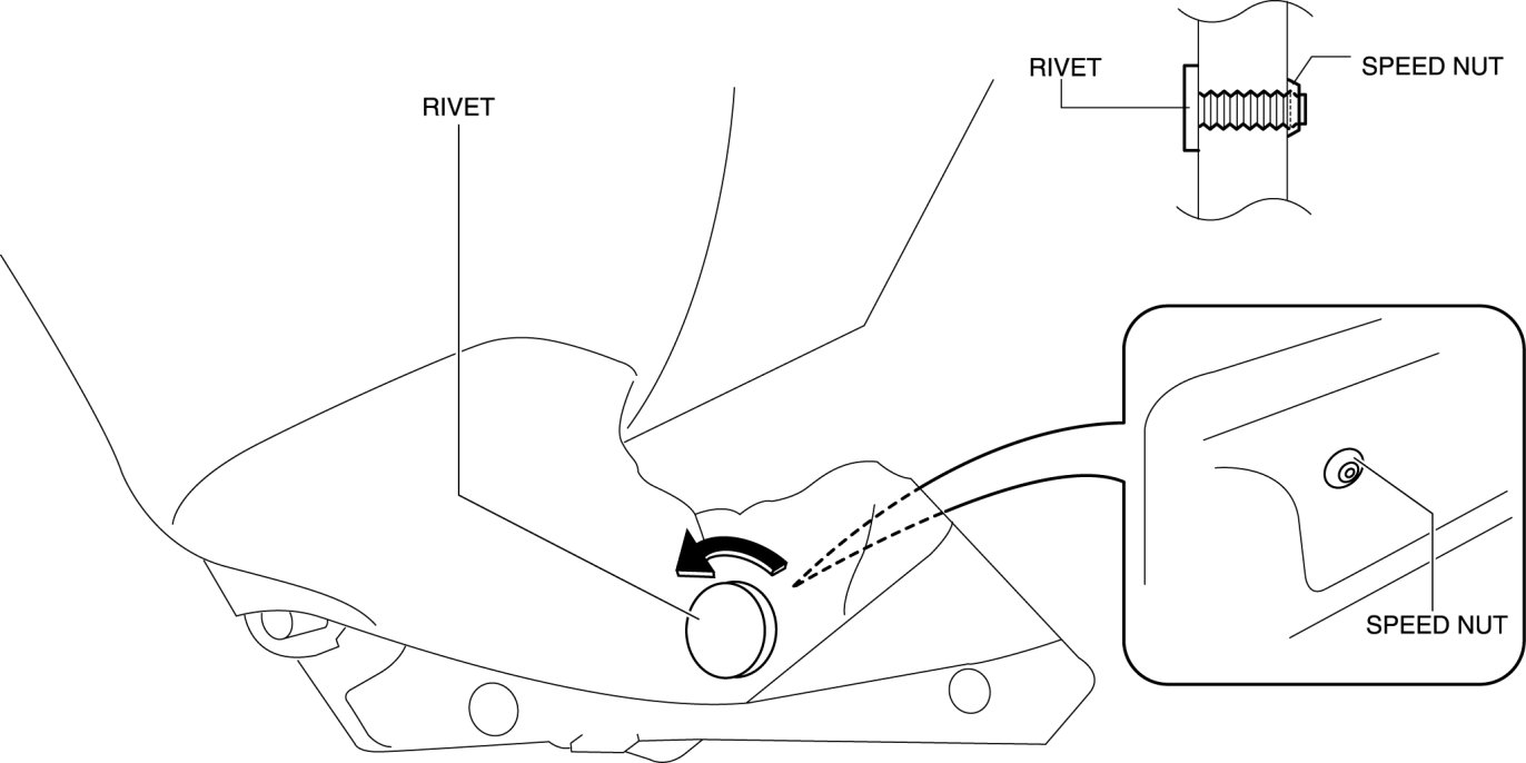 7. Press down on the speed nut to prevent it from moving, rotate the rivet in the direction of the arrow in the figure, and then remove the rivet.