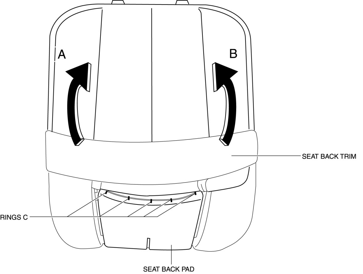 13. Partially peal back the seat back trim from the seat back pad, remove rings C shown in the figure, then remove the seat back trim.