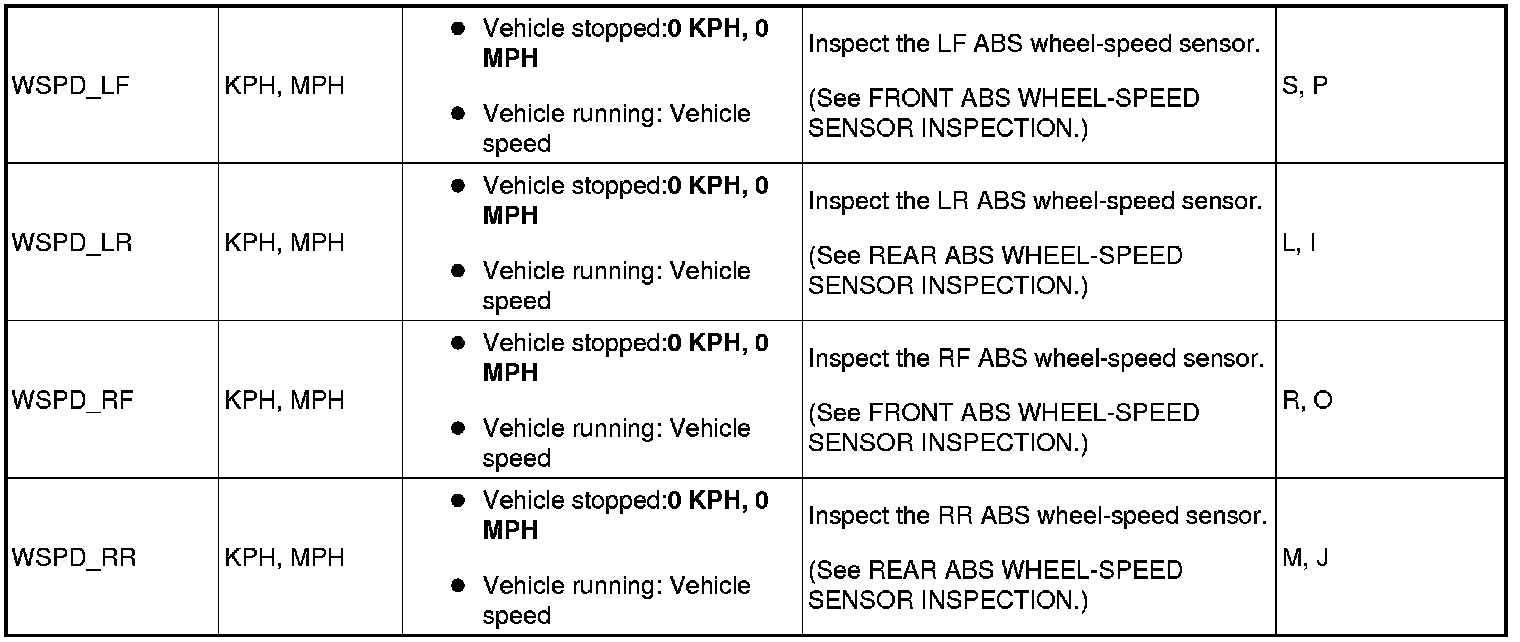 PID/DATA Monitor Table