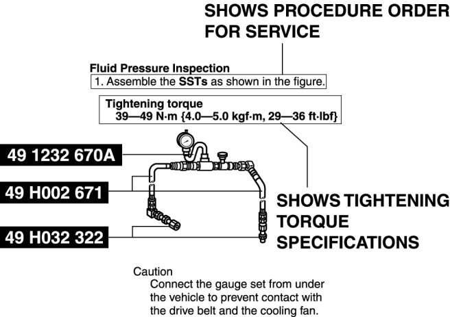 - There are eight symbols indicating oil, grease, fluids, sealant, and the use of SST or equivalent. use. These symbols show application points or use of these materials during service.