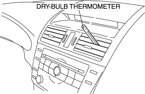 2. Place a dry-bulb thermometer in the passenger-side center ventilator outlet.