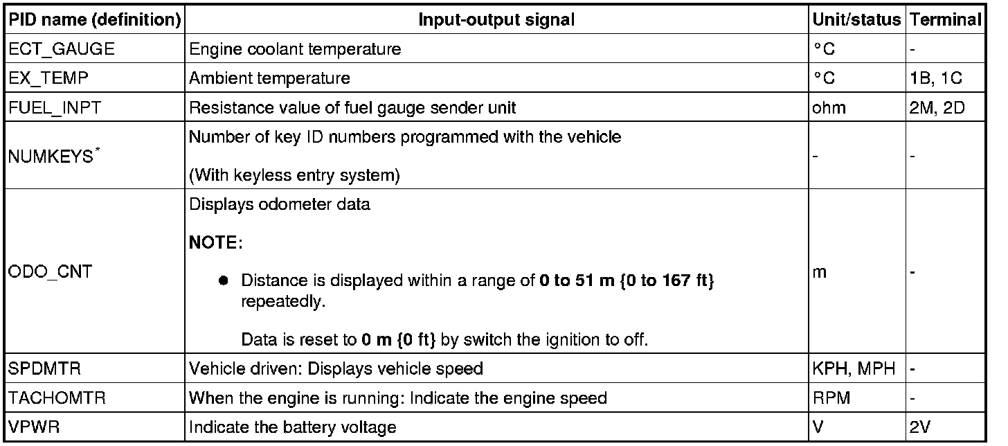 PID/DATA MONITOR TABLE [INSTRUMENT CLUSTER]