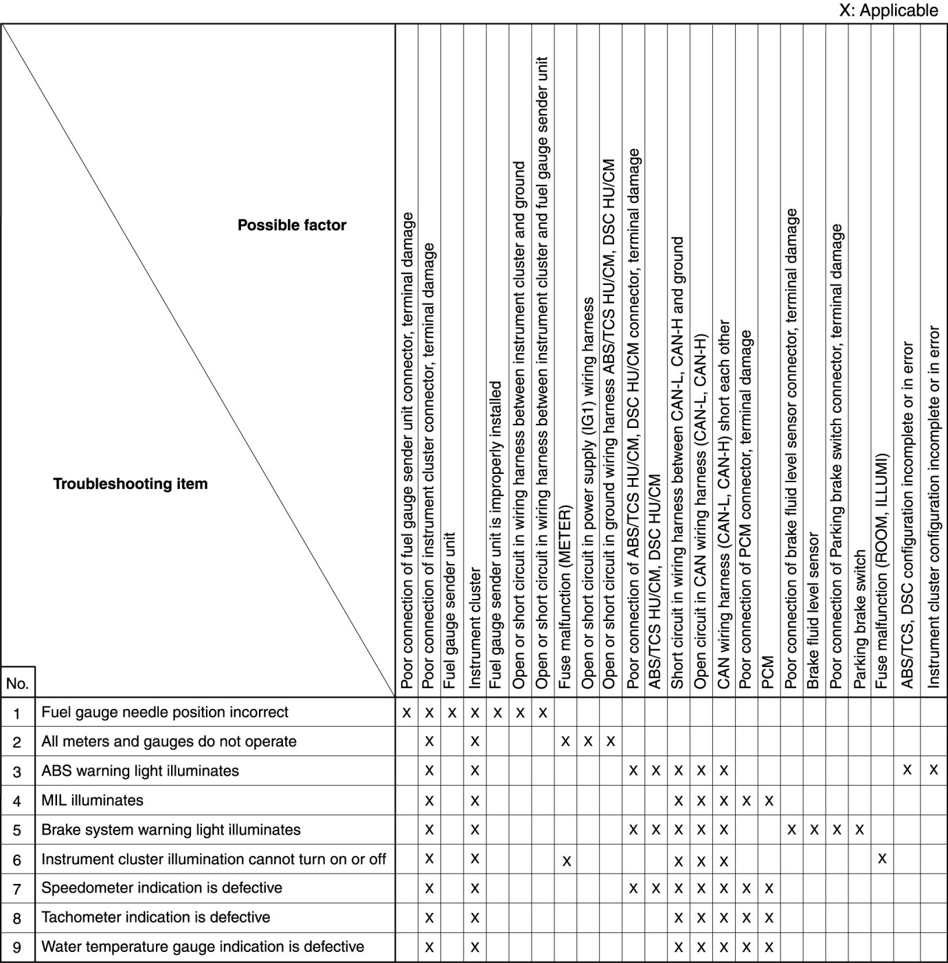 QUICK DIAGNOSTIC CHART [INSTRUMENT CLUSTER]