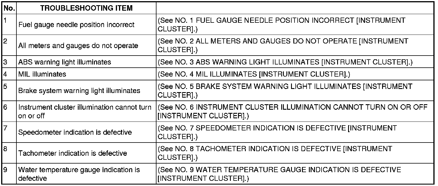 SYMPTOM TROUBLESHOOTING [INSTRUMENT CLUSTER]
