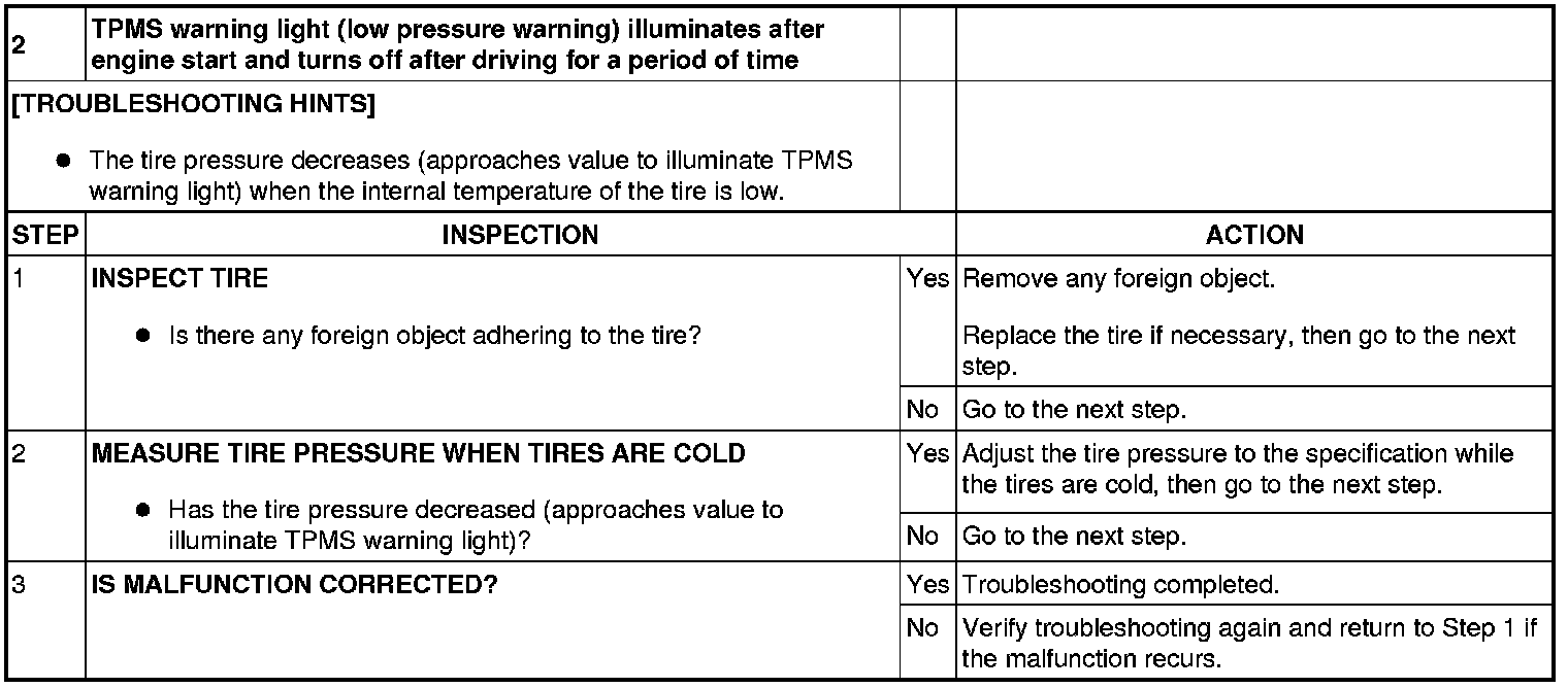 No.2 TPMS Warning Light (Low Pressure Warning) Illuminates After Engine Start And Turns Off After Driving For Period Of Time