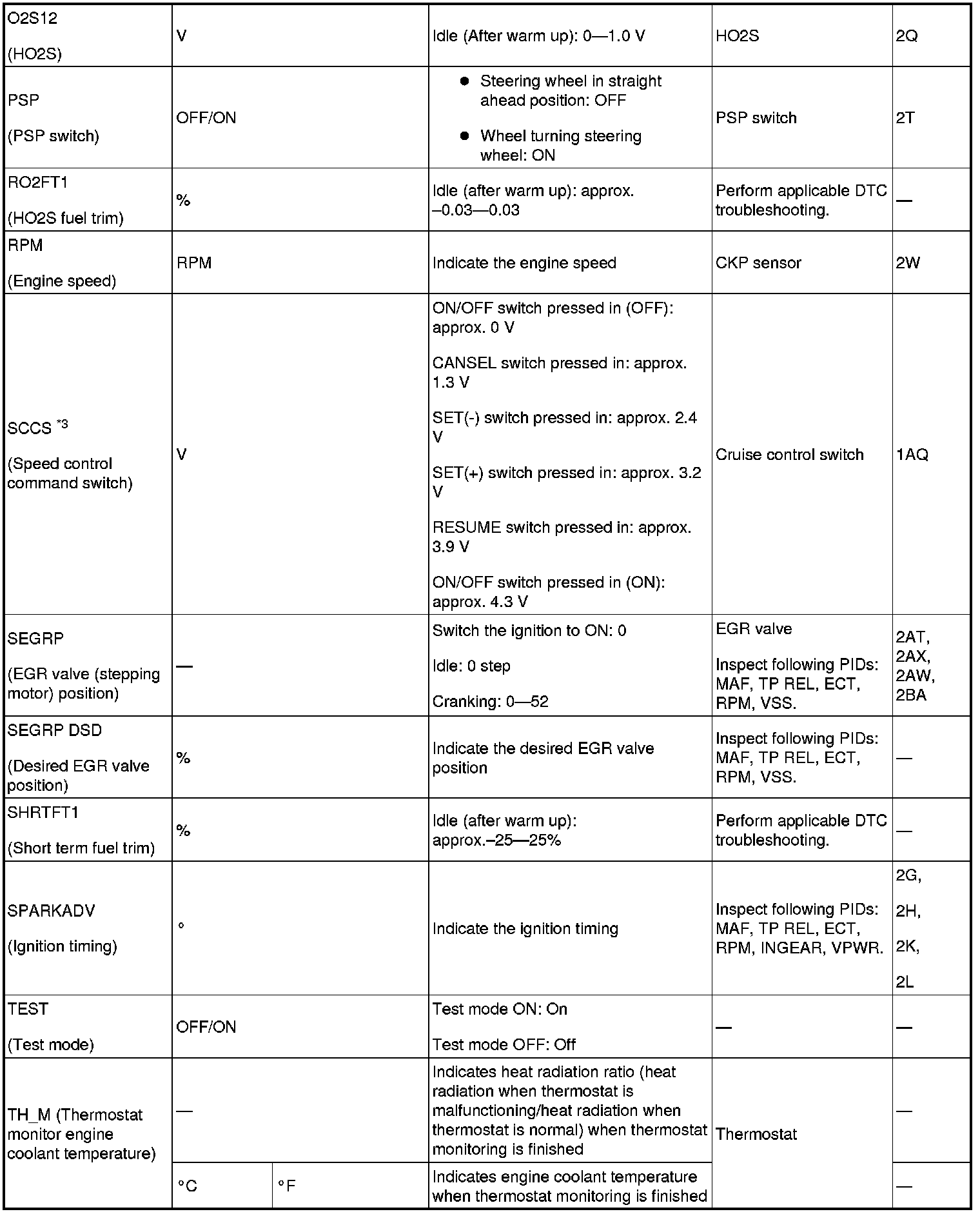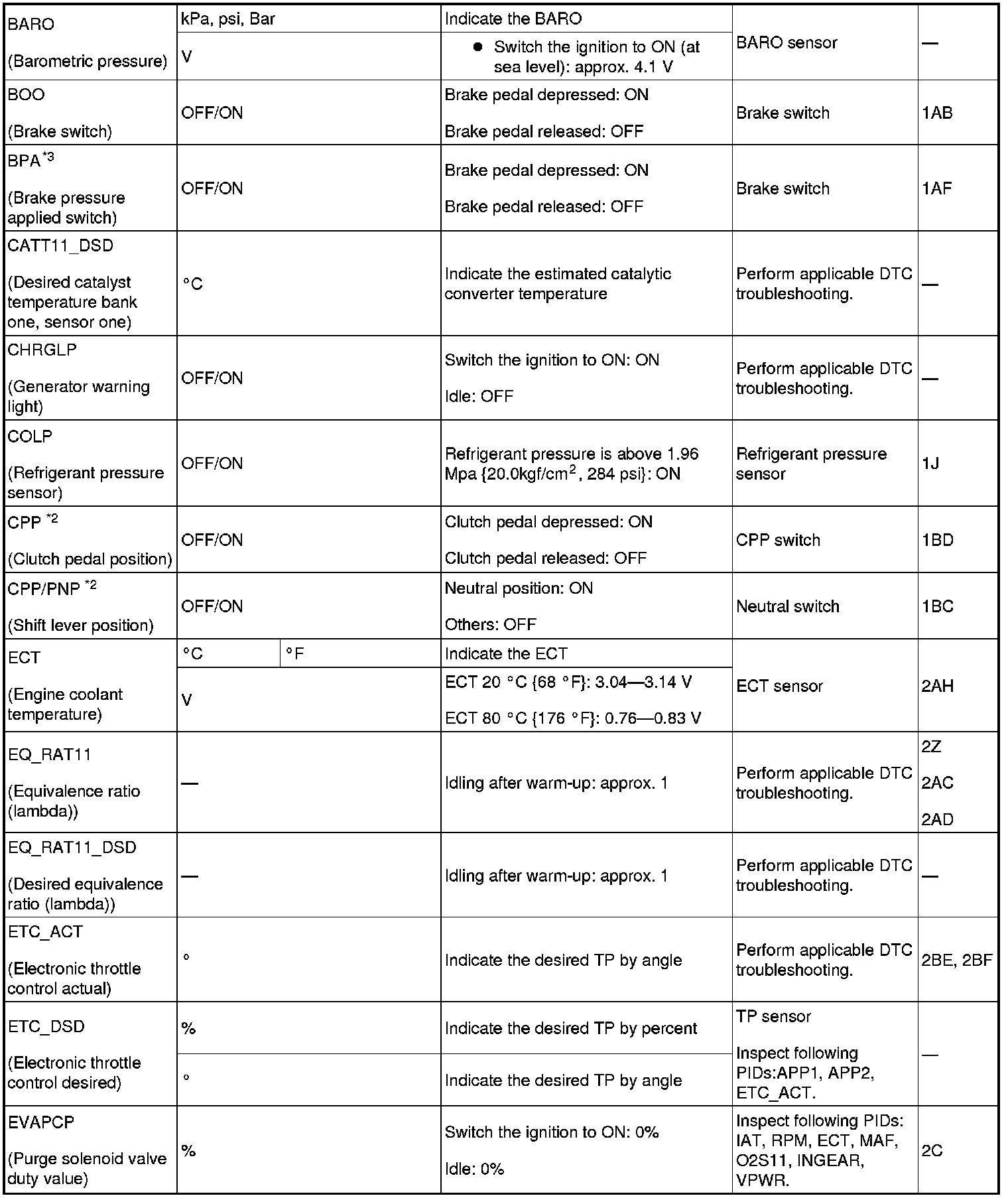 PID/DATA Monitor Table (Reference) (Part 2):