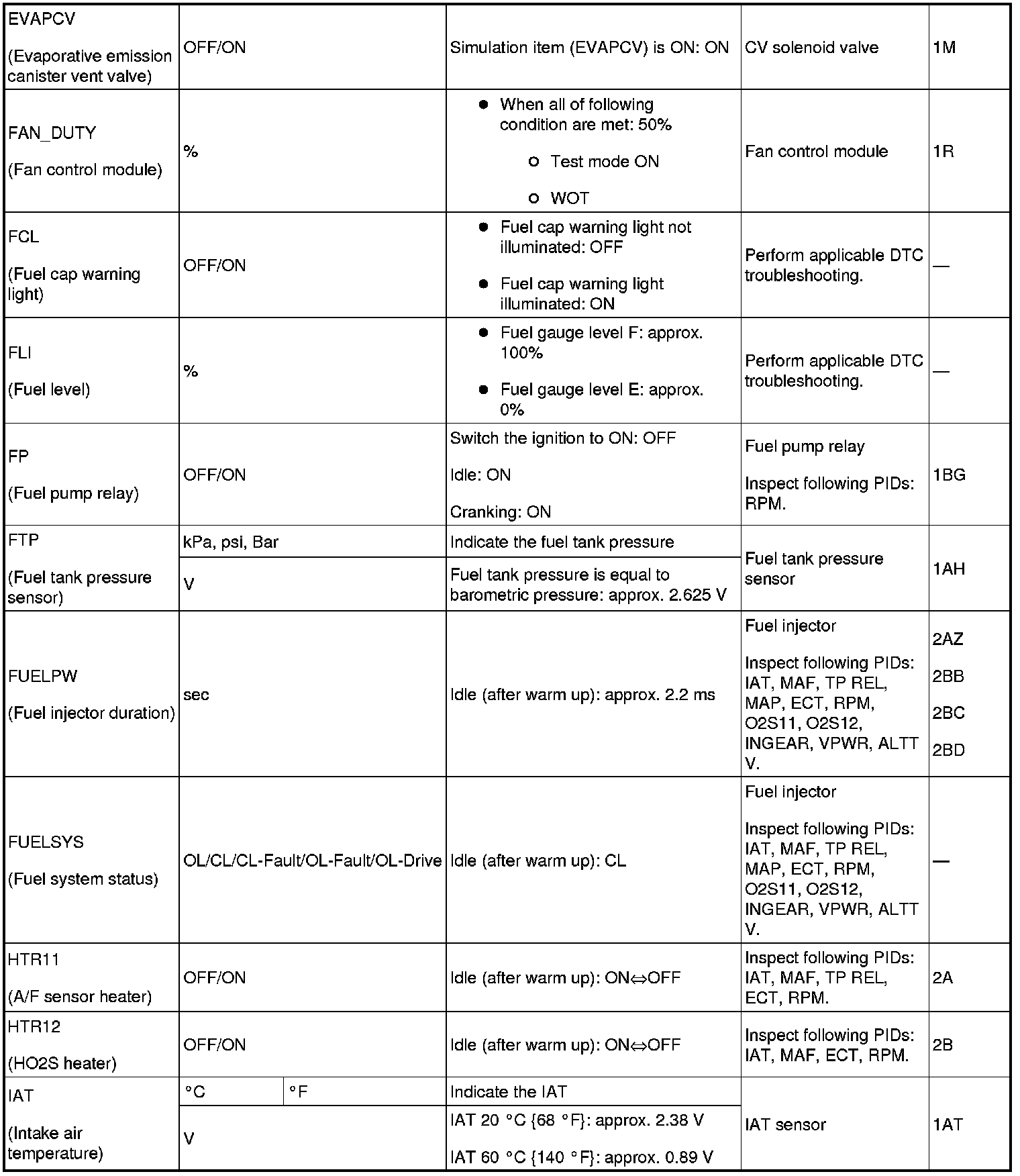 PID/DATA Monitor Table (Reference) (Part 1):