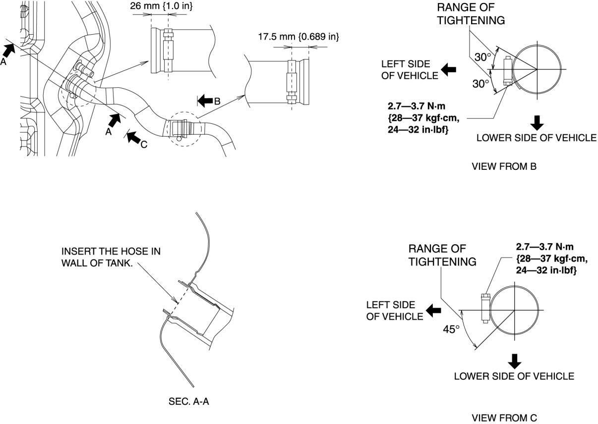 1. Install the joint hose and clamp as shown in the figure.