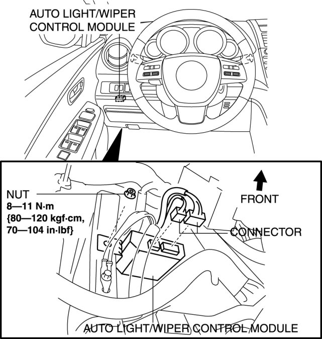 - When replacing the auto light/wiper control module, the configuration procedure must be performed before removing the auto light/wiper control module. Replacing the auto light/wiper control module without performing the configuration procedure will result in system malfunction.