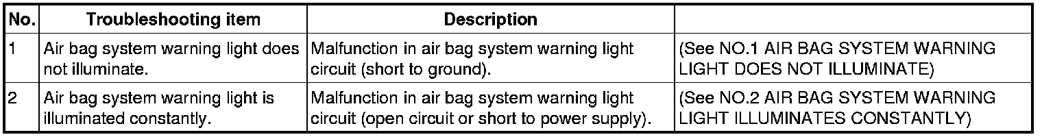 Use the chart below verify the symptoms of the trouble in order to diagnose the appropriate area.
