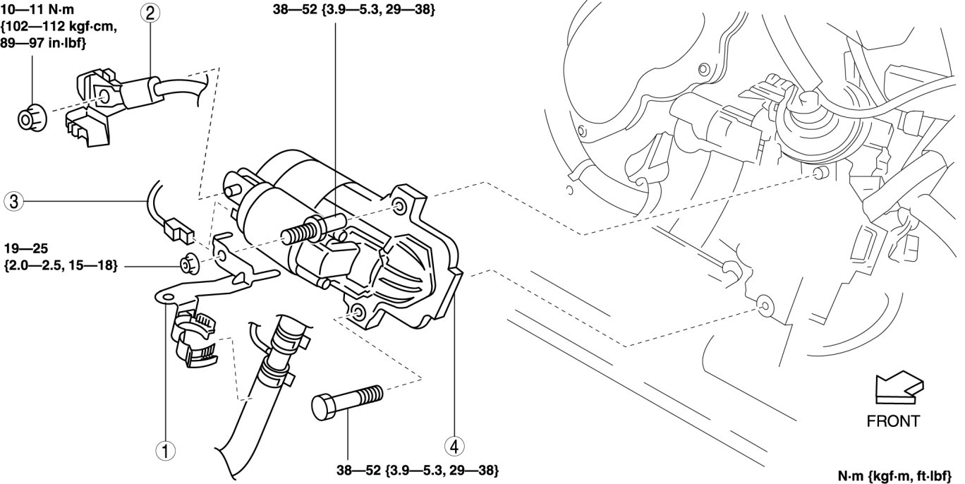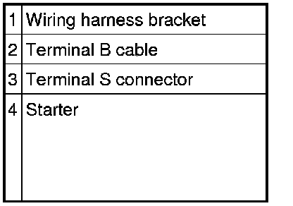 - When the battery cables are connected, touching the vehicle body with starter terminal B will generate sparks. This can cause personal injury, fire, and damage to the electrical components. Always disconnect the negative battery cable before performing the following operation.