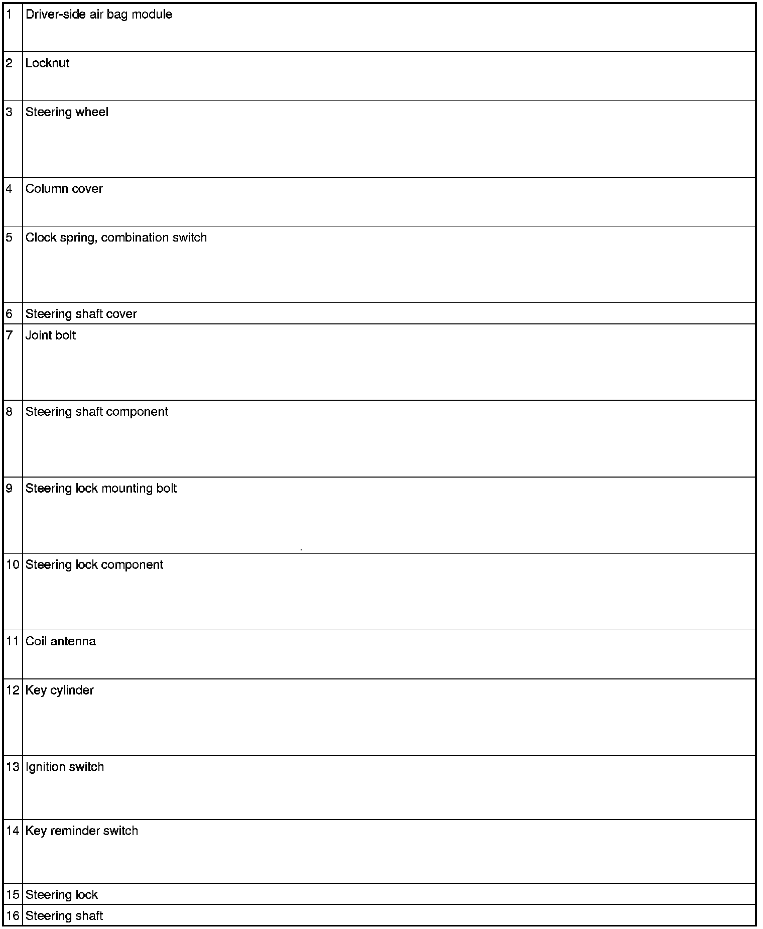 Steering Shaft Component Removal Note