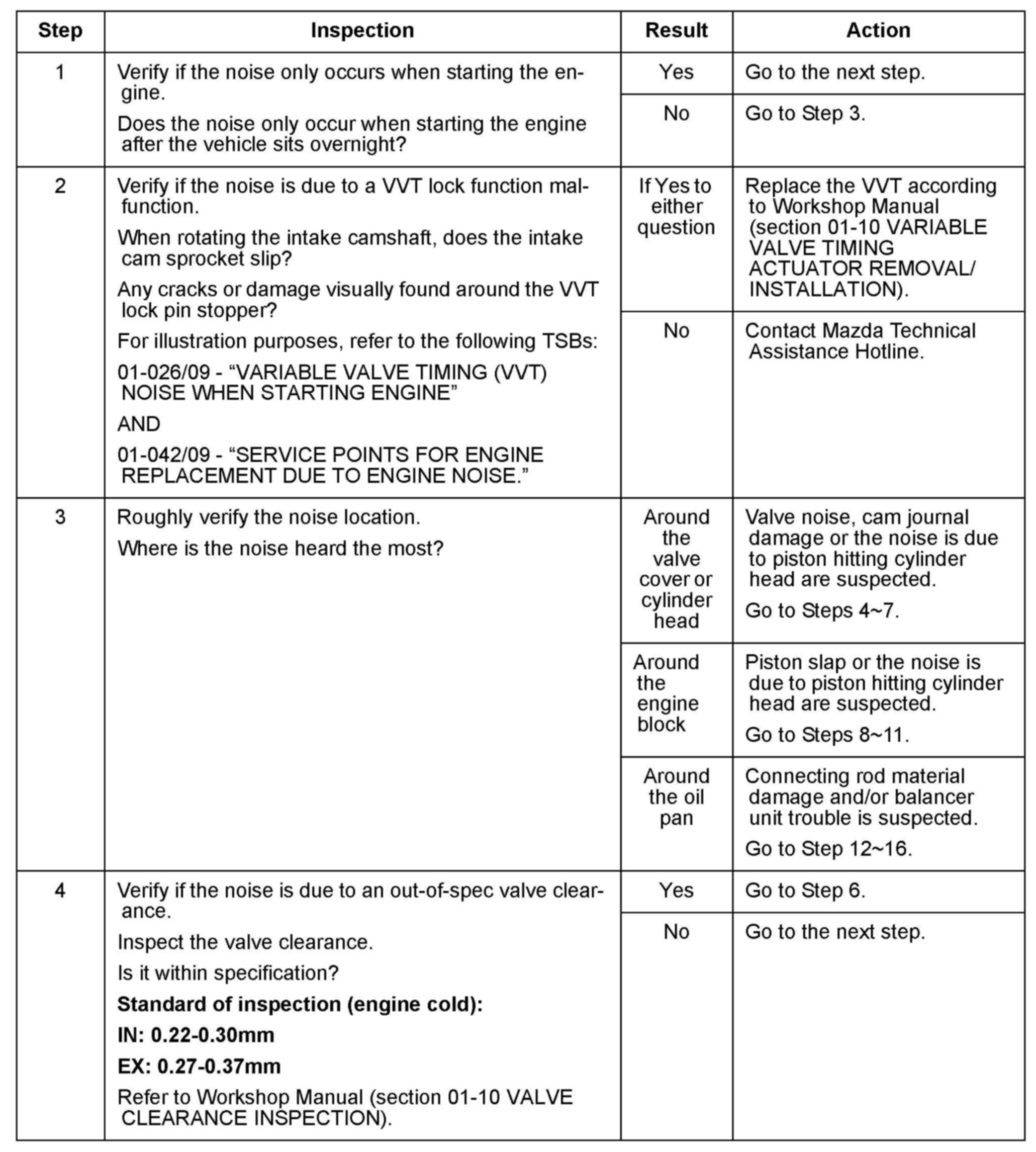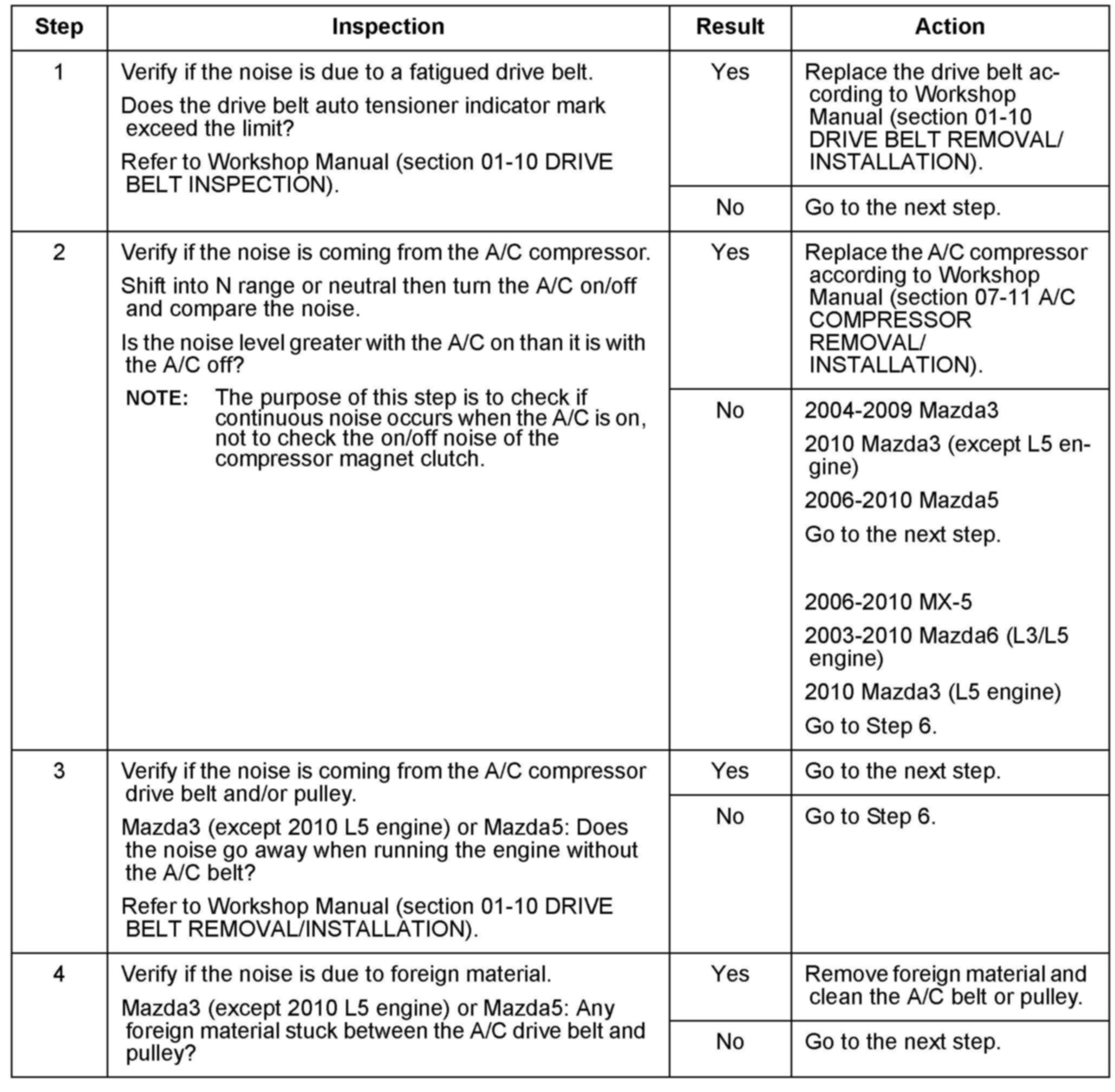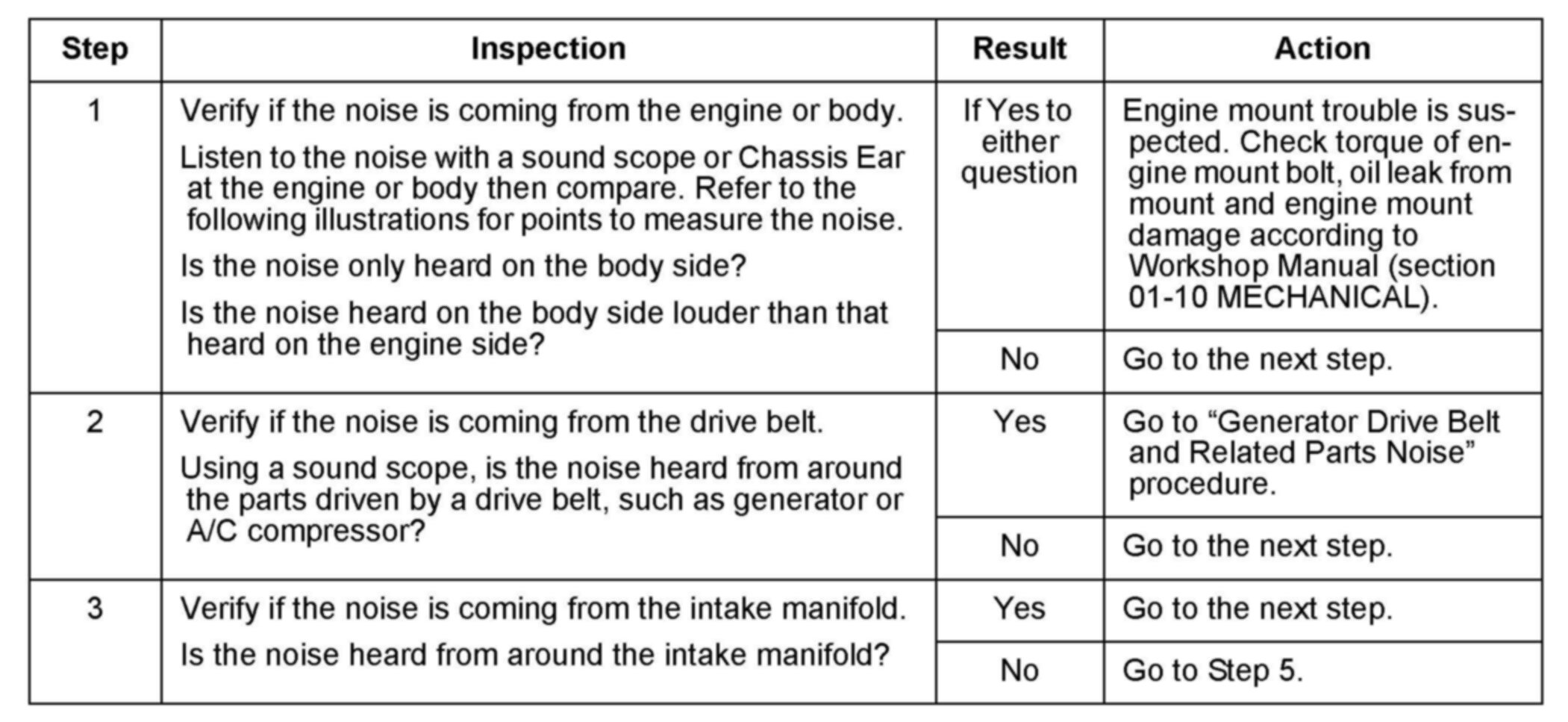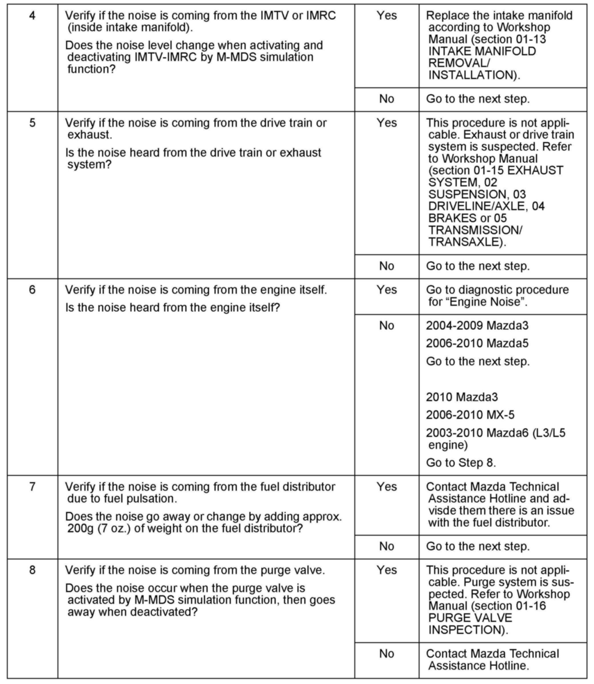 MAZDA3 AND MAZDA5: POINTS TO MEASURE THE NOISE AROUND THE ENGINE MOUNTS: