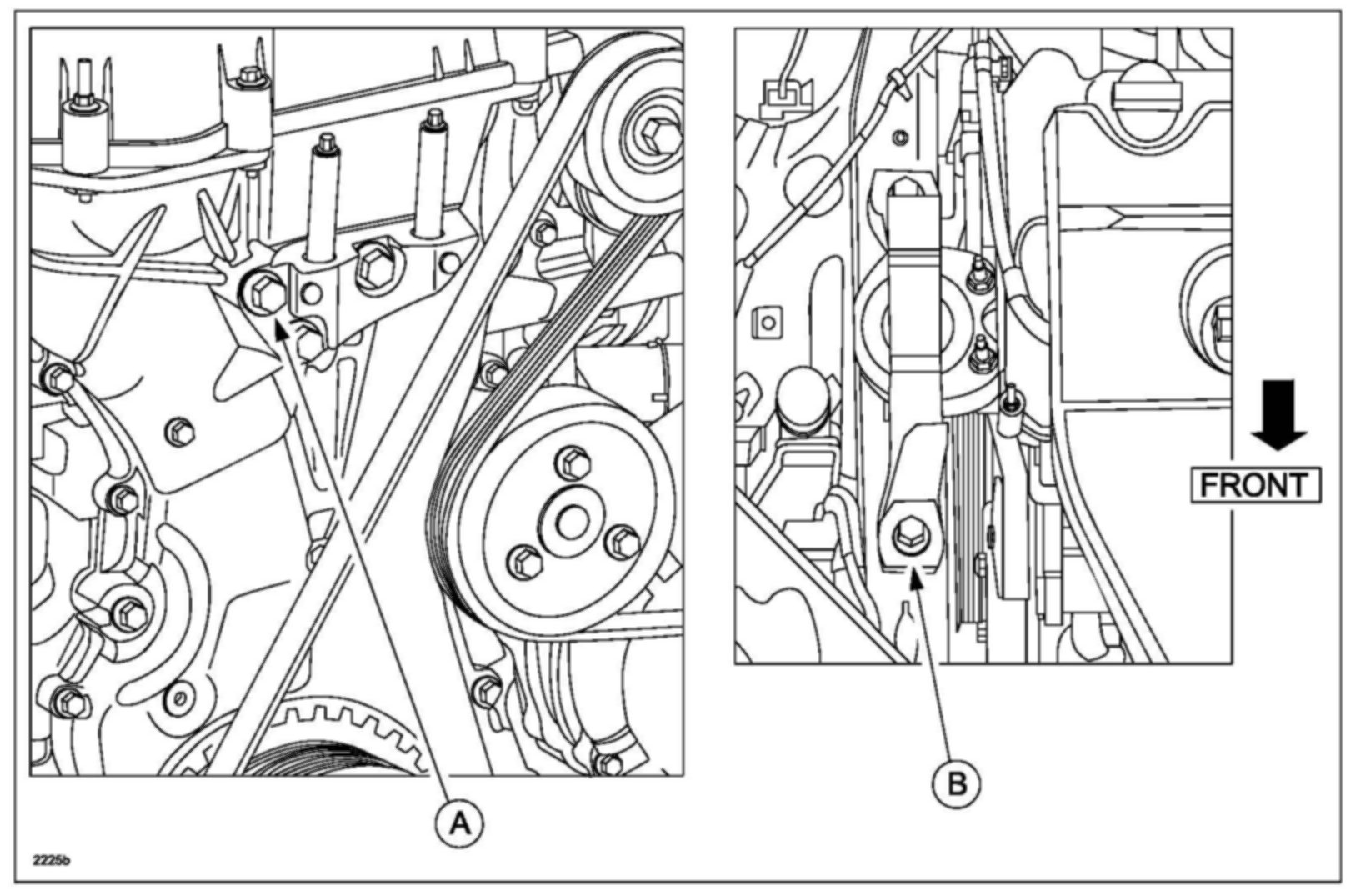 Engine Side: No. 20 front cover bolt head located below No. 3 engine mount fixing point (A).