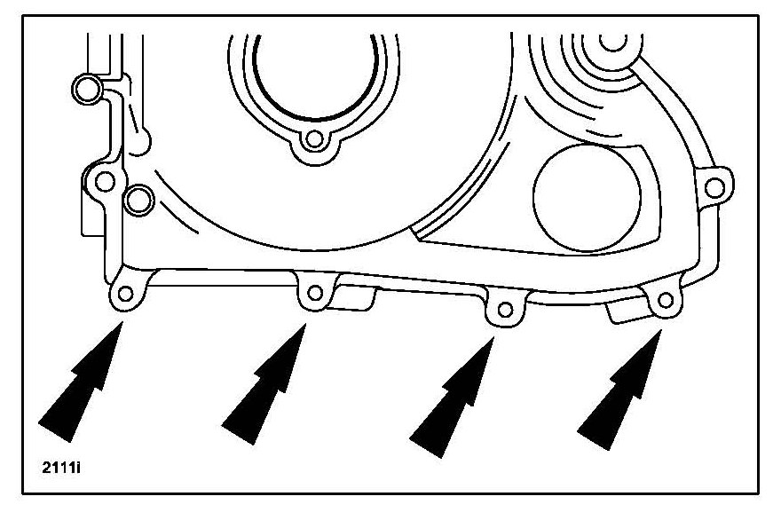 e. Tighten four (4) front cover bolts to 8.0-11.5 N.m (5.9-8.5 ft-lbf) in the order shown.
