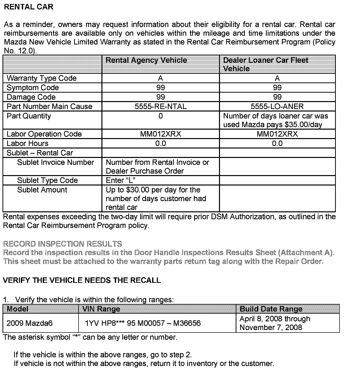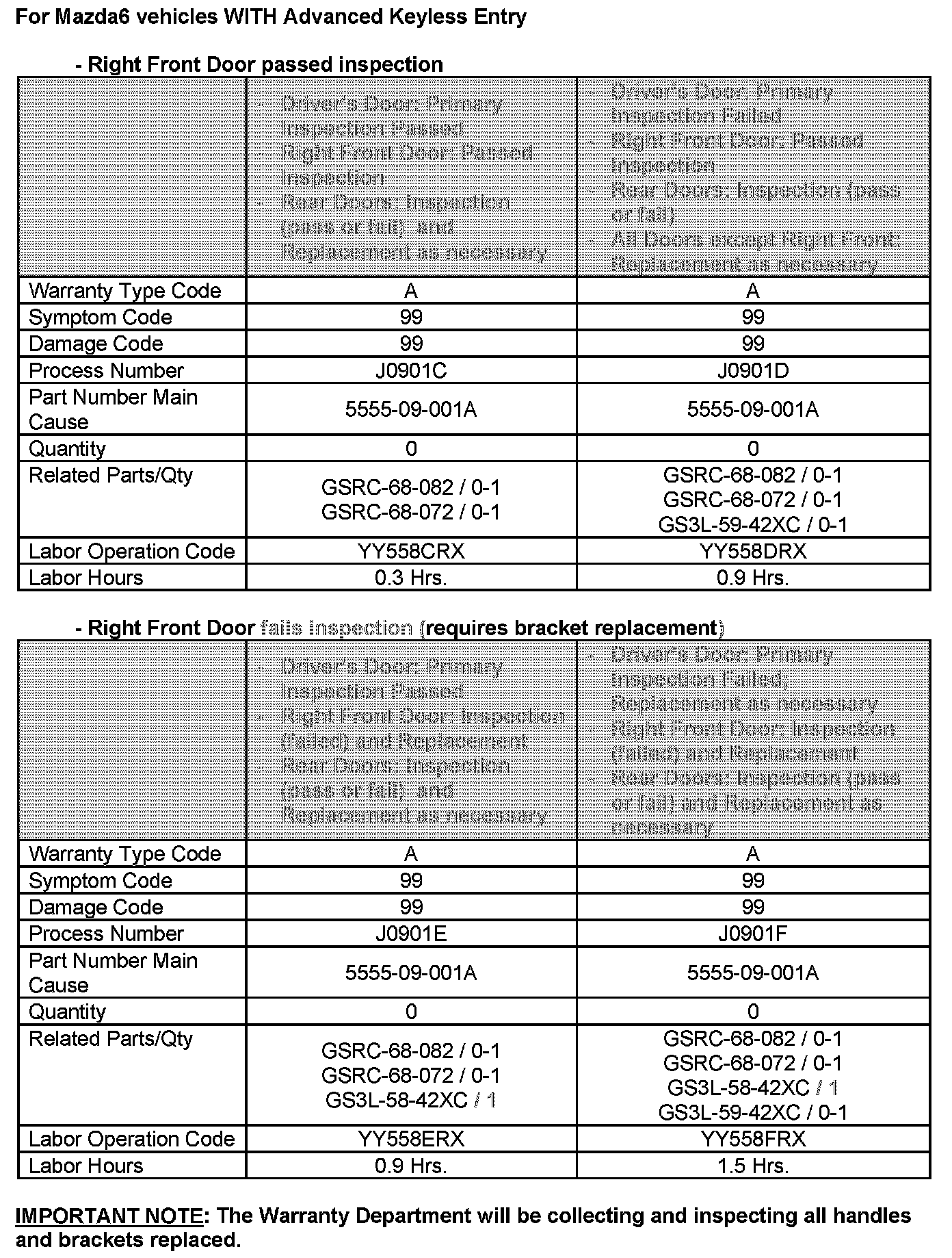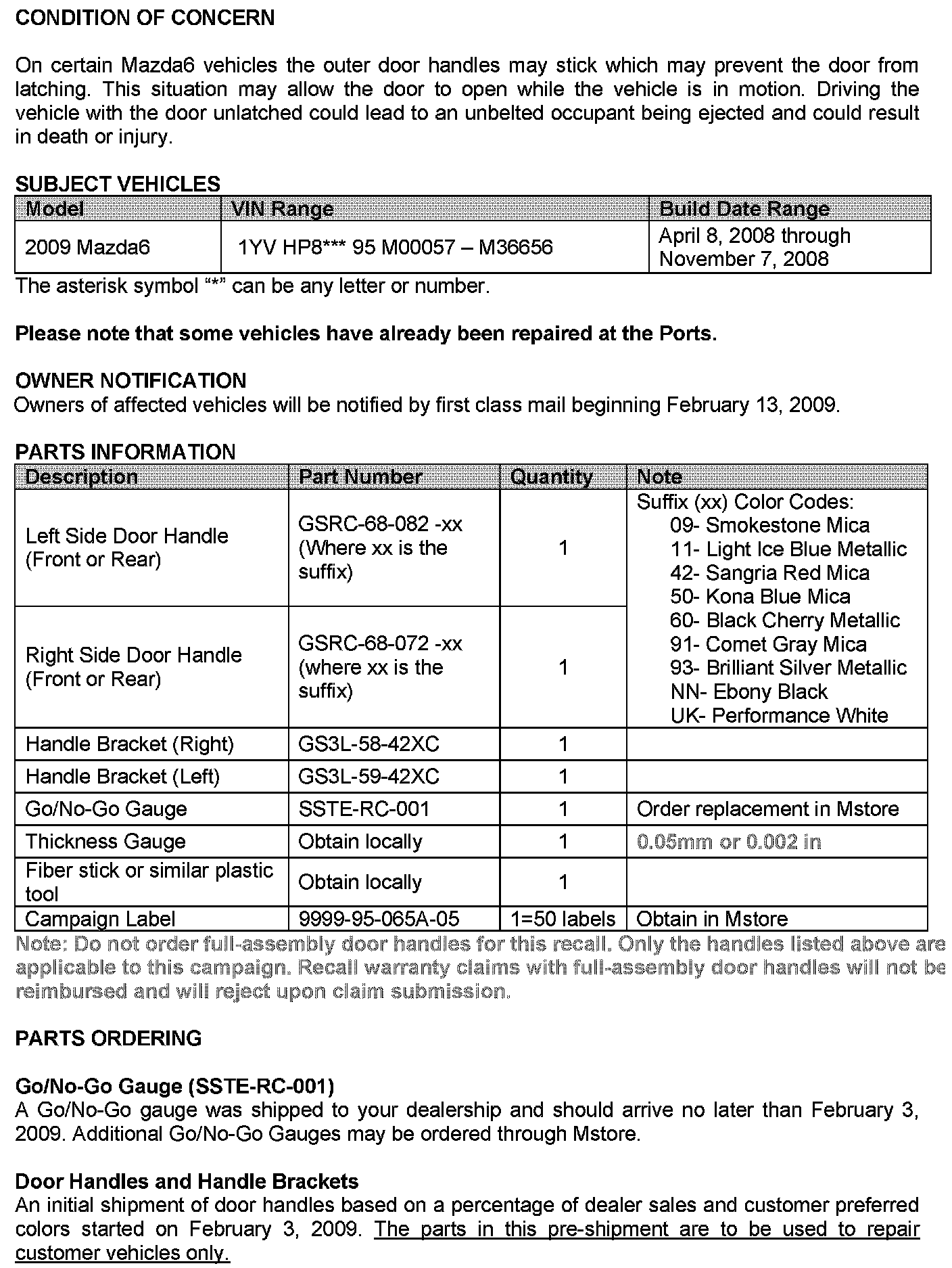 Recall - Front/Rear Exterior Door Handles Stick