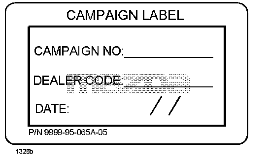 F. CAMPAIGN LABEL INSTALLATION1. Fill out a blue "Campaign Label" (9999-95-065A-05) with Campaign No: "5209A", your dealer code, today's date, and affix it to the vehicle's bulkhead as shown in "A. VEHICLE INSPECTION PROCEDURE".