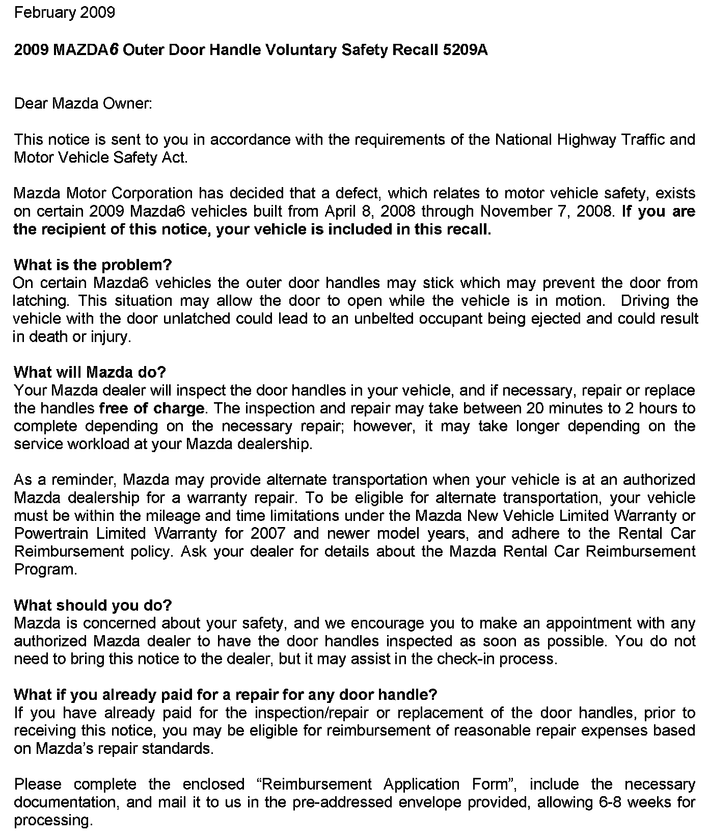 Recall - Front/Rear Exterior Door Handles Stick