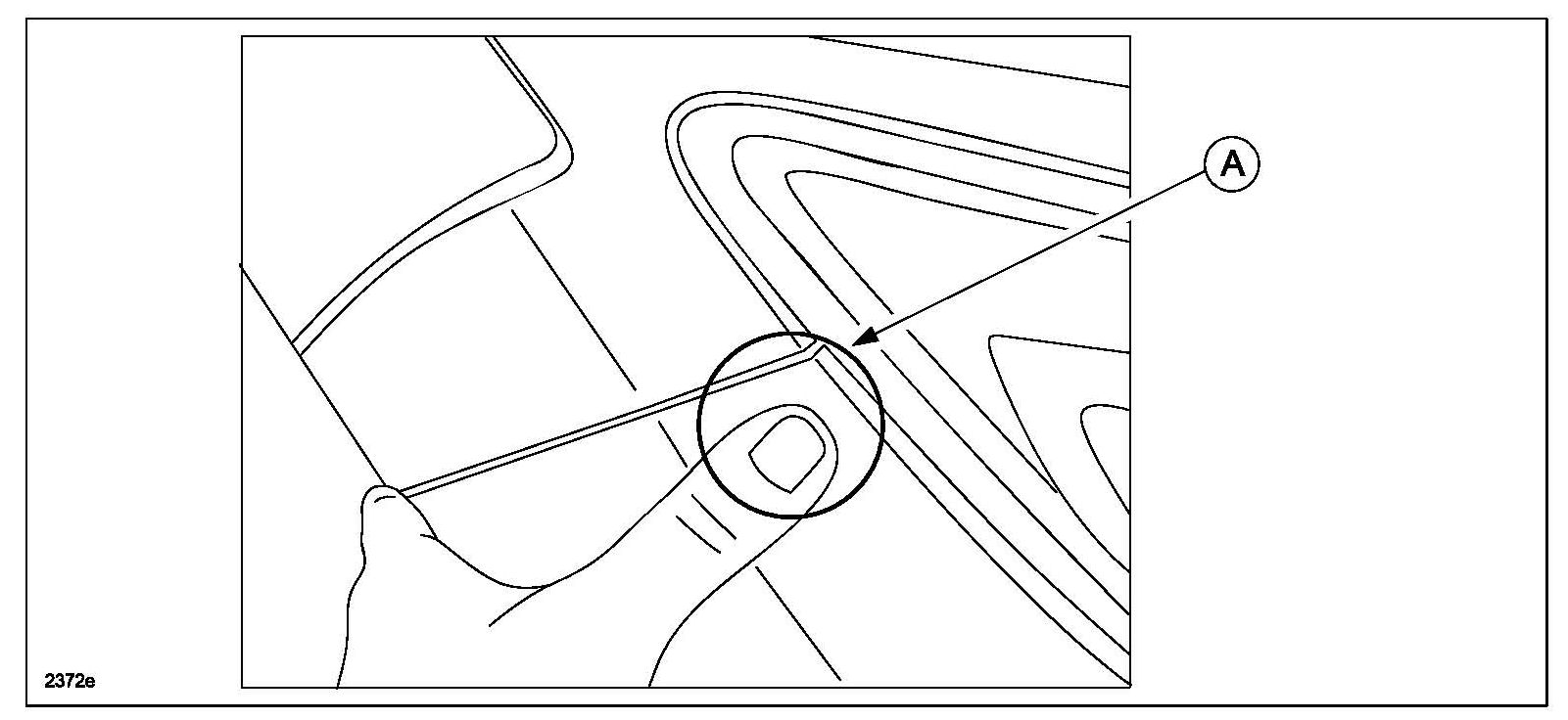 7. While pressure is still applied to the fog lamp area, seat the final clip into the retainer (A). Listen for an audible click" to ensure it is fully installed.