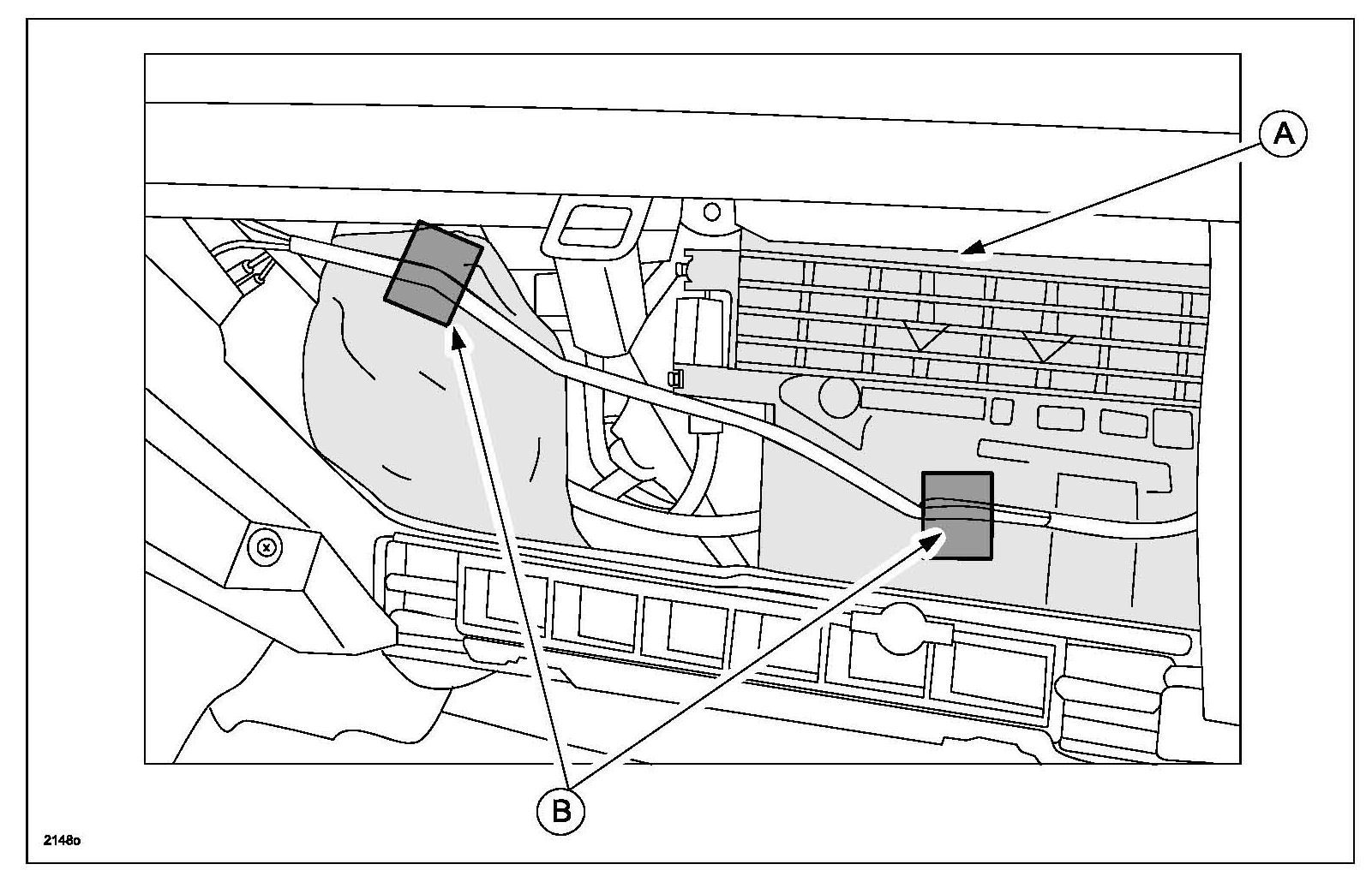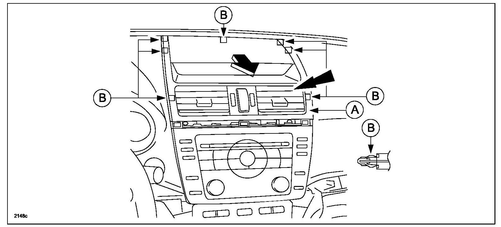 3. Remove clips (B), then upper center panel (A).