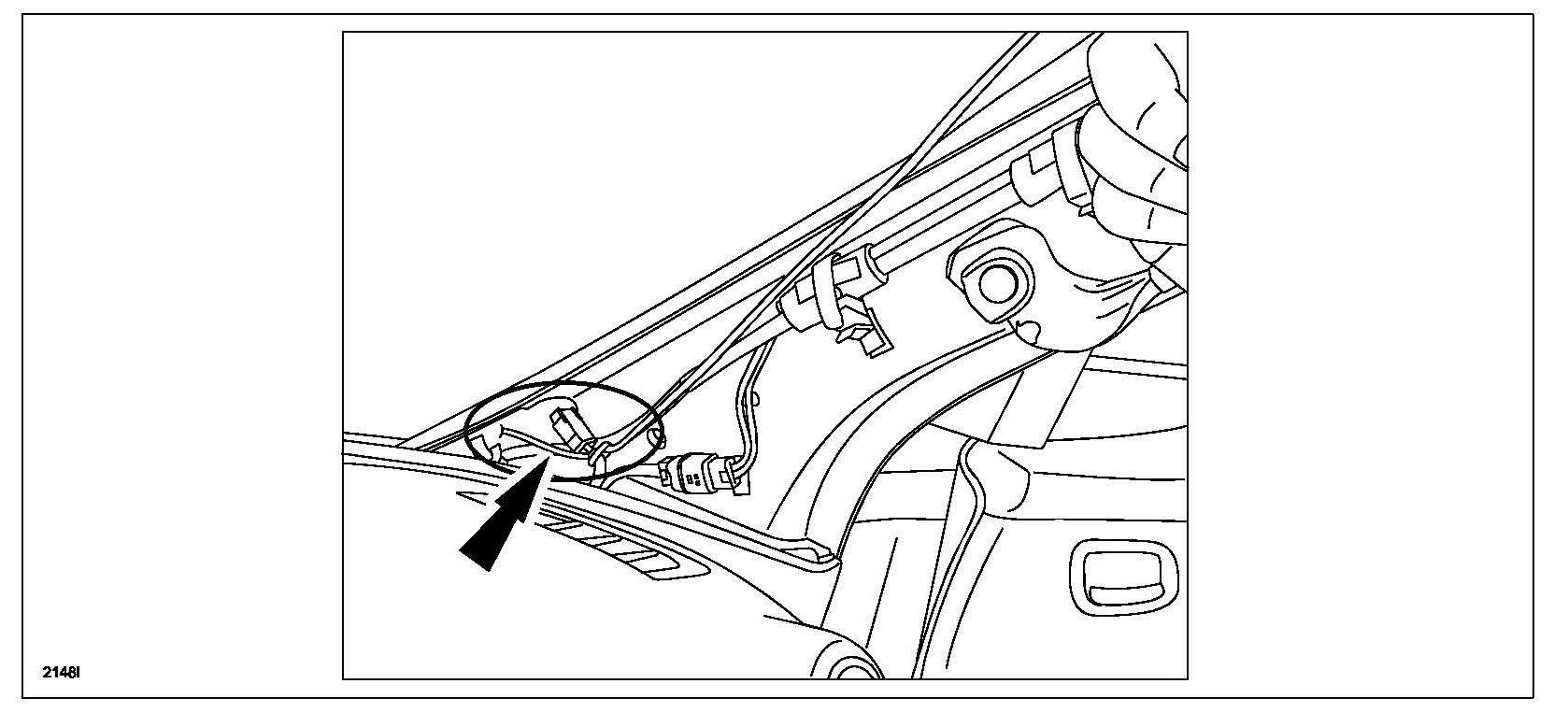 c. Pull short cord up through A-pillar and instrumental panel clearance.