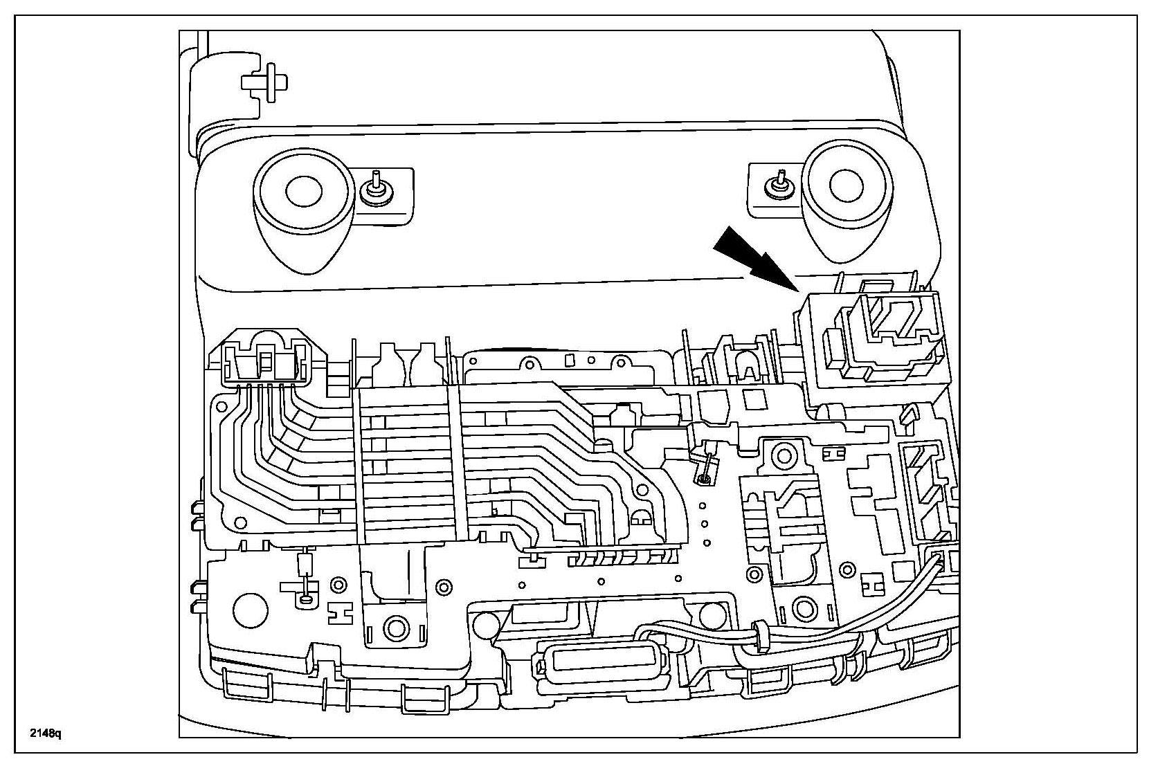 1. Route short cord from upper center panel to overhead console.