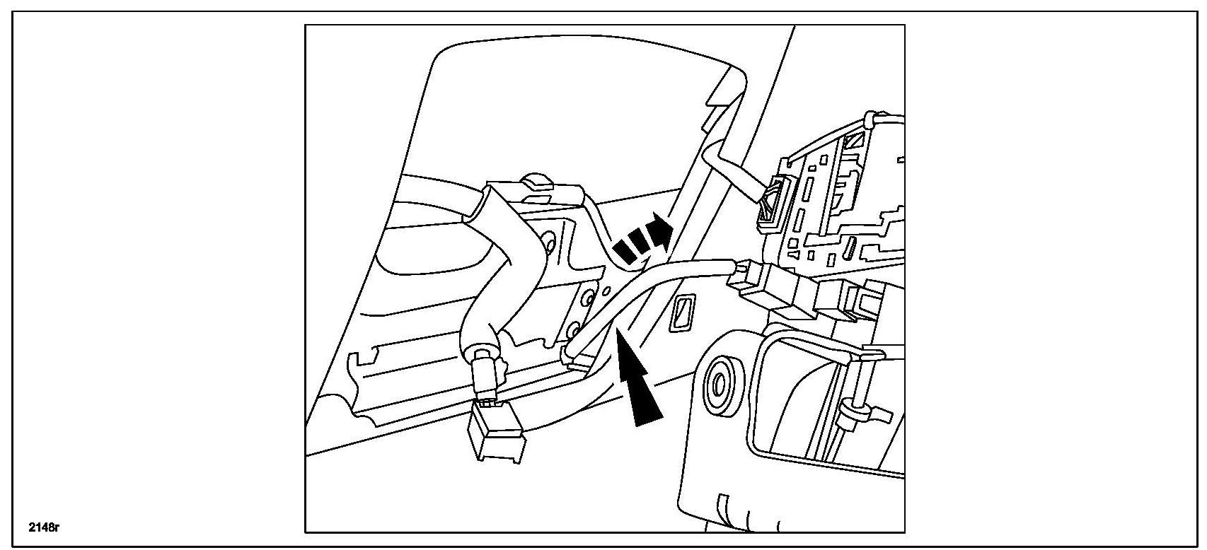 b. Route short cord behind glove box.