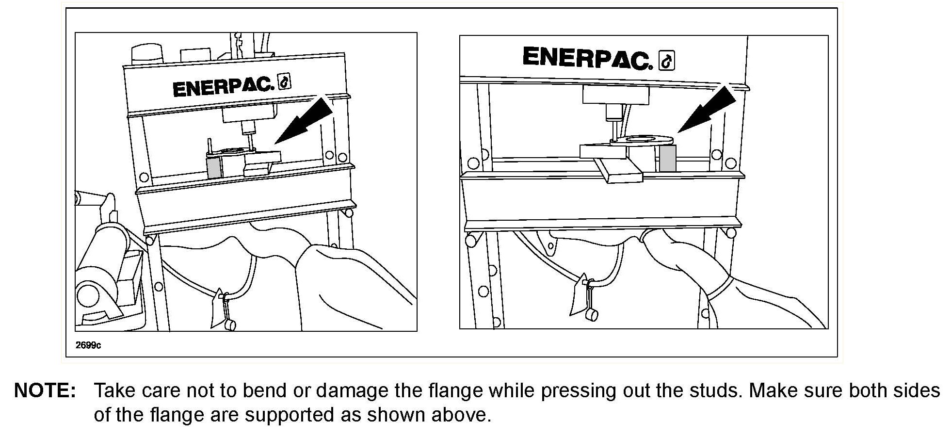 6. Press out both broken and unbroken studs from main silencer flange that mates with the pre-silencer flange: