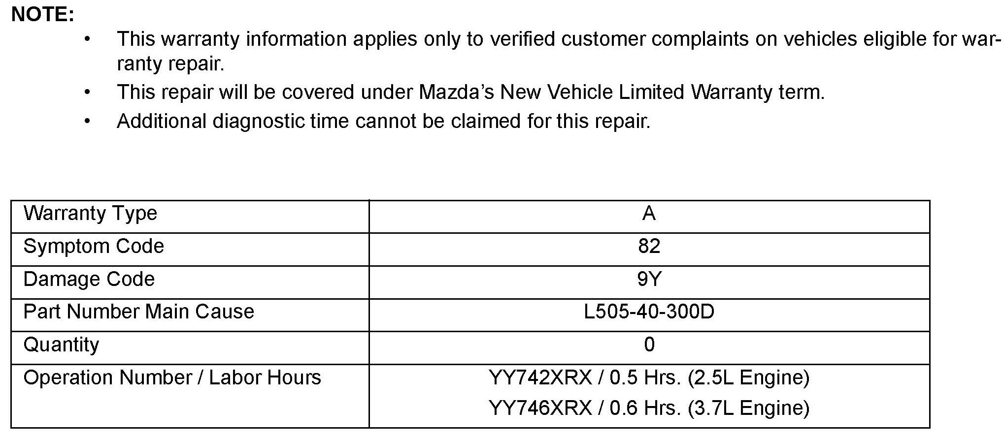 2009-2012 Mazda6 vehicles produced before June 7, 2012