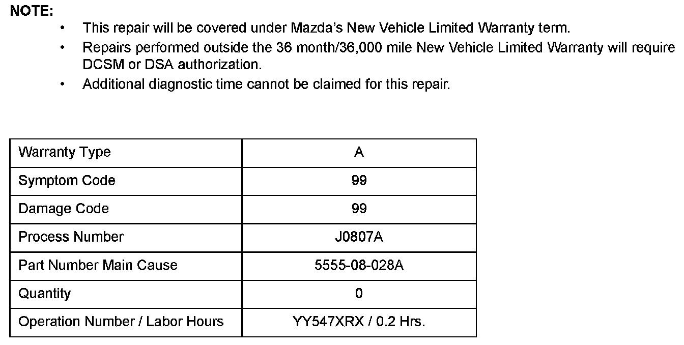 ^ UNDER THE MAZDA SERVICE PROGRAM (MSP22), ALL CURRENT DEALER INVENTORY