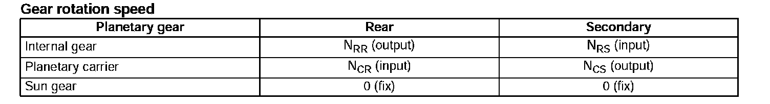 ^ From the result NSS=0 in formula (1), the rotation speed of the secondary planetary gear unit can be calculated using the following formula.