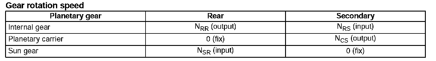 ^ From the result NSS=0 in formula (1), the rotation speed of the secondary planetary gear unit can be calculated using the following formula.