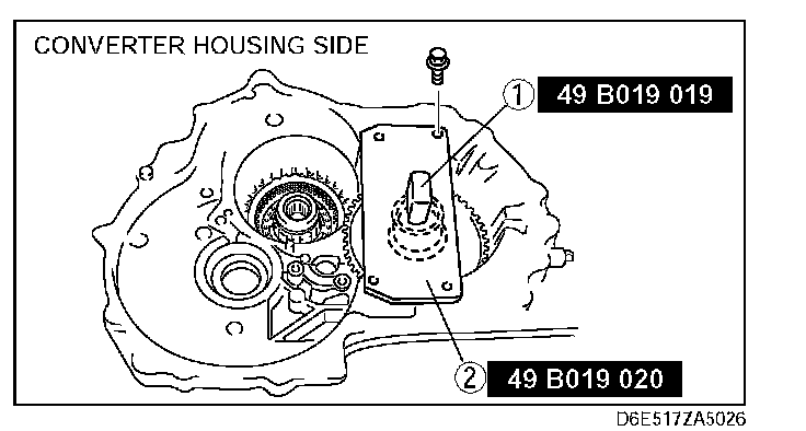 6) Install the selected adjustment shim to the converter housing.